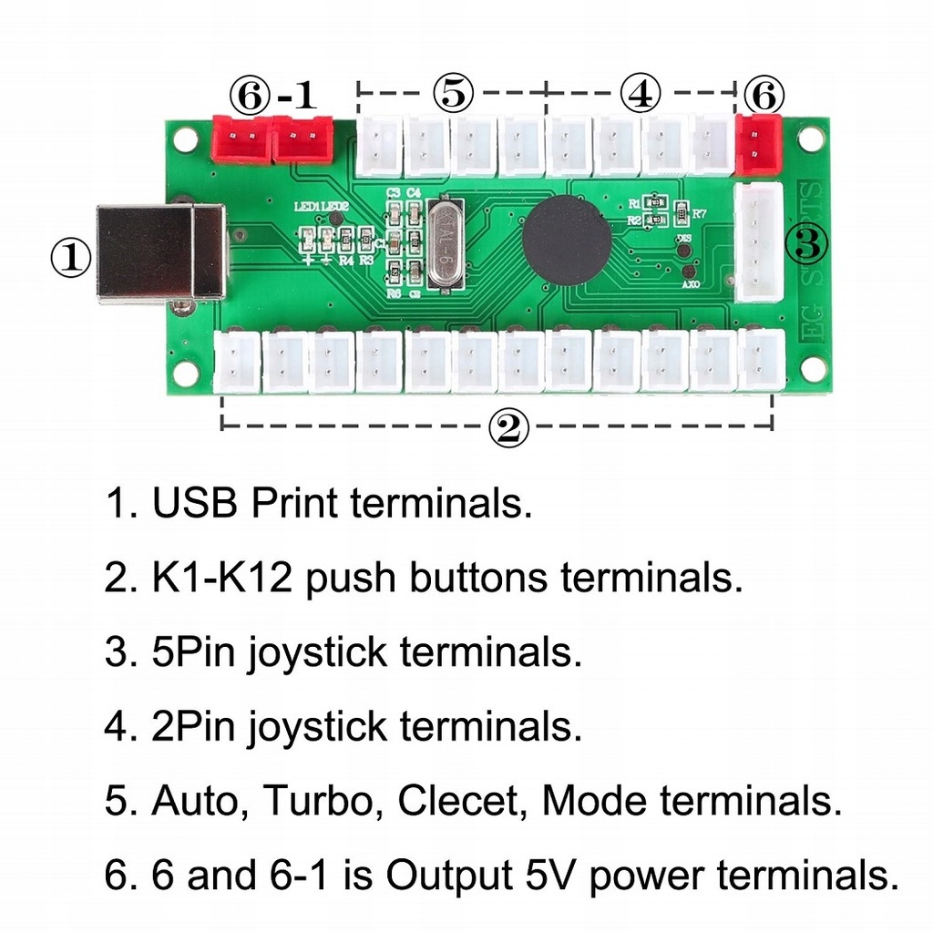 - Wszystkie typy joysticków i przycisków z terminalem 4,8 mm! Użyj tego kodera, aby zbudować własną maszynę do gier Arcade!