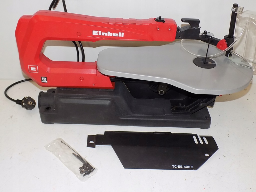 TC-SS 405 E PIŁA WŁOŚNICA marki Einhell jest urządzeniem pomocnym w modelarstwie i innych pracach związanych z precyzyjnym cięciem. Solidna podstawa piły zapewnia stabilność i cichą pracę. Praktyczne urządzenie wydmuchujące chroni obrabiany przedmiot przed wiórami, ułatwiając cięcie dokładnie wzdłuż zaznaczonego konturu. Aby utrzymać czystość w miejscu pracy można użyć adaptera do odkurzacza. Brzeszczoty można szybko i bezpiecznie wymieniać za pomocą dźwigni zaciskowej.