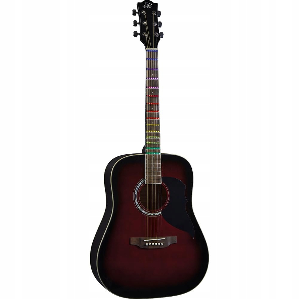 EKO GUITARS - RANGER RED VISUAL NOTE, Gitara akustyczna Dreadnought "Visual Note", Świerk, Opaski i dno Linden, folia LED "Visual Note", która łączy się z dedykowaną aplikacją, kolor czerwony