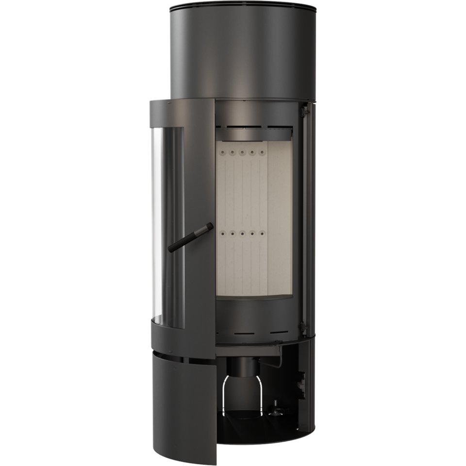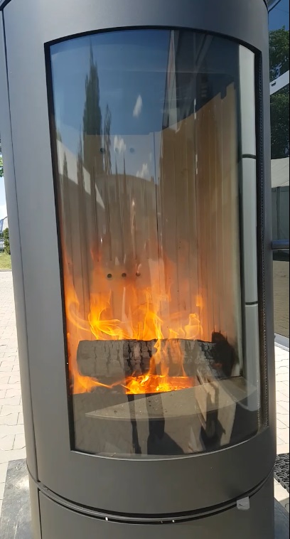 Dodatkowo w piecu zastosowany jest system czystej szyby (kurtyna powietrza), czyli powietrze dostarczane jest bezpośrednio na szybę poprzez system kanałów umieszczonych na bokach kominka. W ten sposób dostarczany jest tlen do górnej części komory spalania, w której następuje dopalanie gazów powstałych w procesie spalania drewna, co dodatkowo ogranicza emisję szkodliwego CO do atmosfery.
