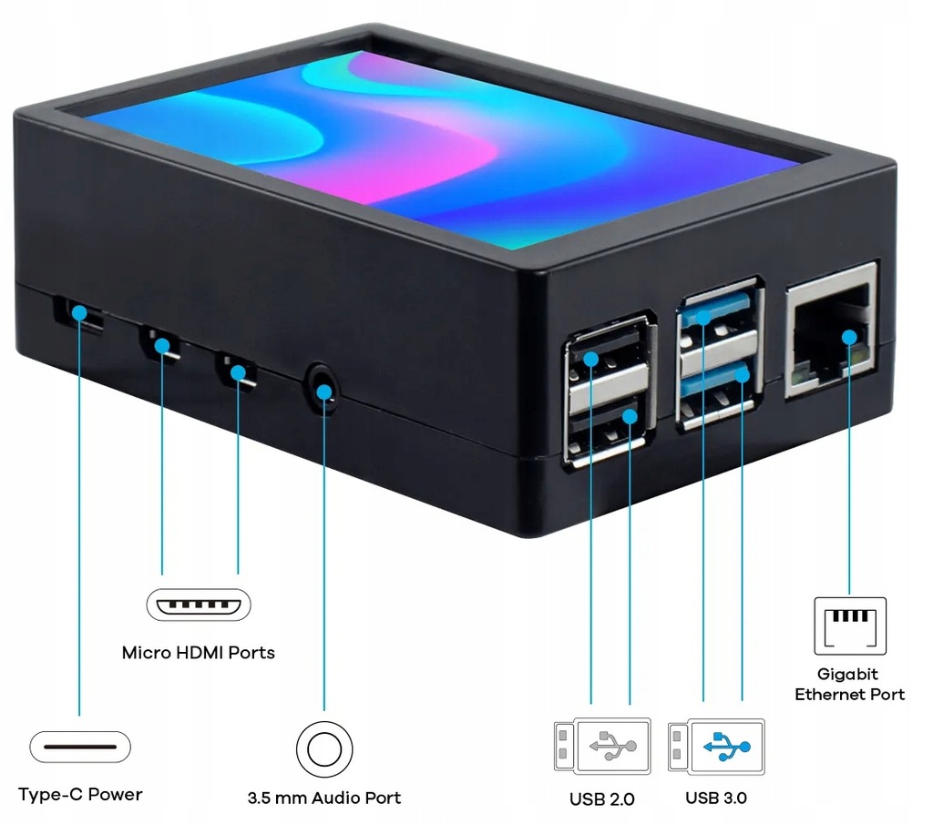 Dotykowy wyświetlacz 3.5 cala dla raspberry Pi 4B z obudową
