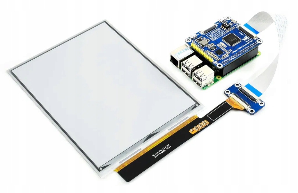 Wyświetlacz Waveshare E-Ink wykonany w technologii e-paper,o przekątnej 7,8" i rozdzielczości 1872 x 1404 px , potrafi wyświetlać dwa kolory: czarny oraz biały. Wspiera odświeżanie częściowe. Ekran współpracuje z Raspberry Pi wraz z nakładką znajdującą się w zestawie. Napięcie zasilania wynosi 5 V.