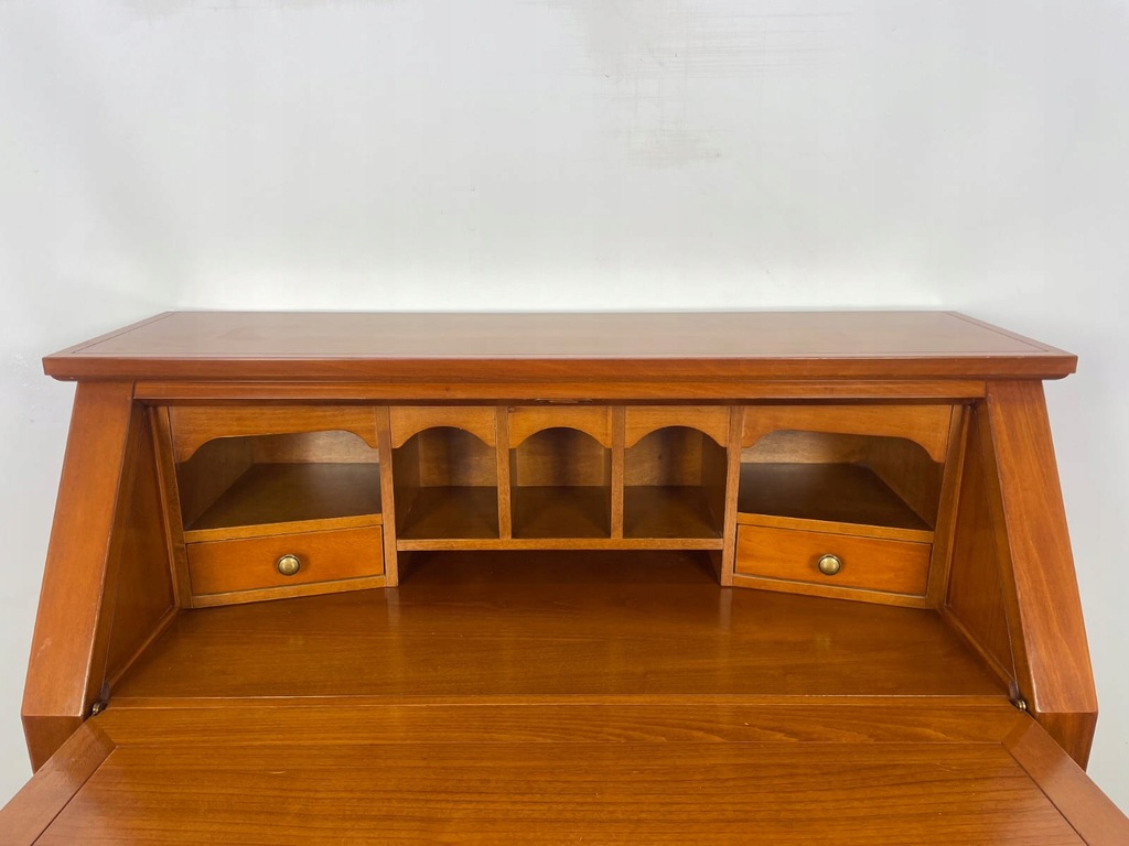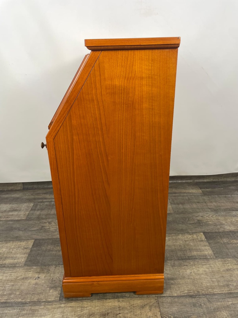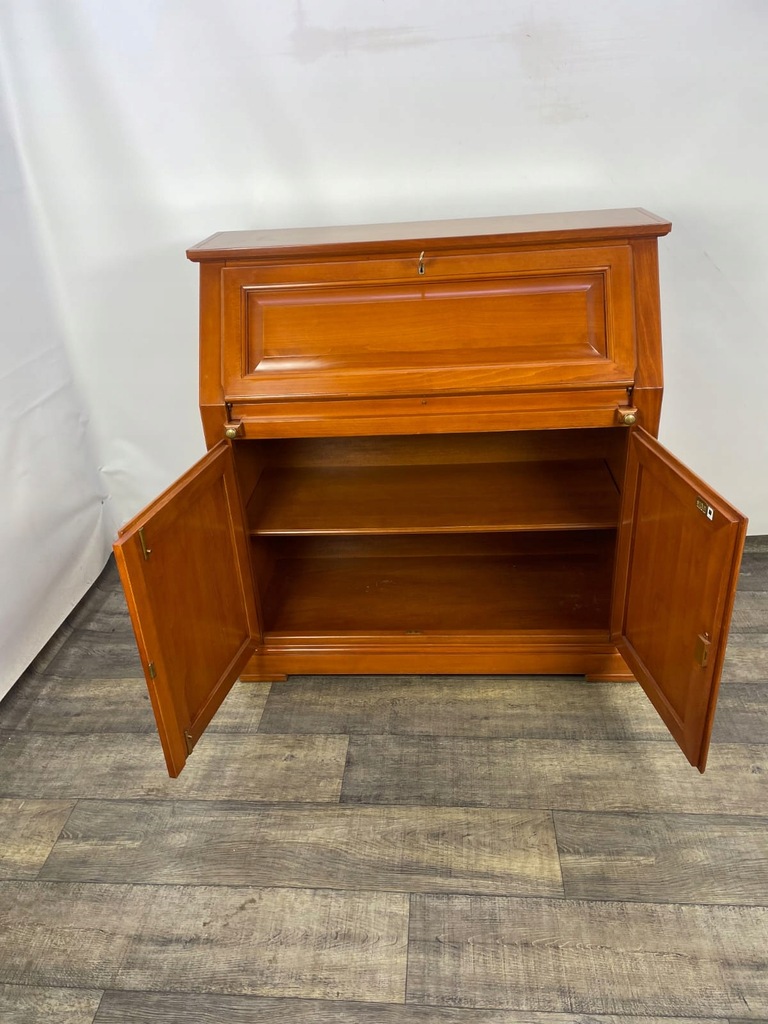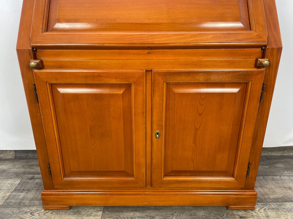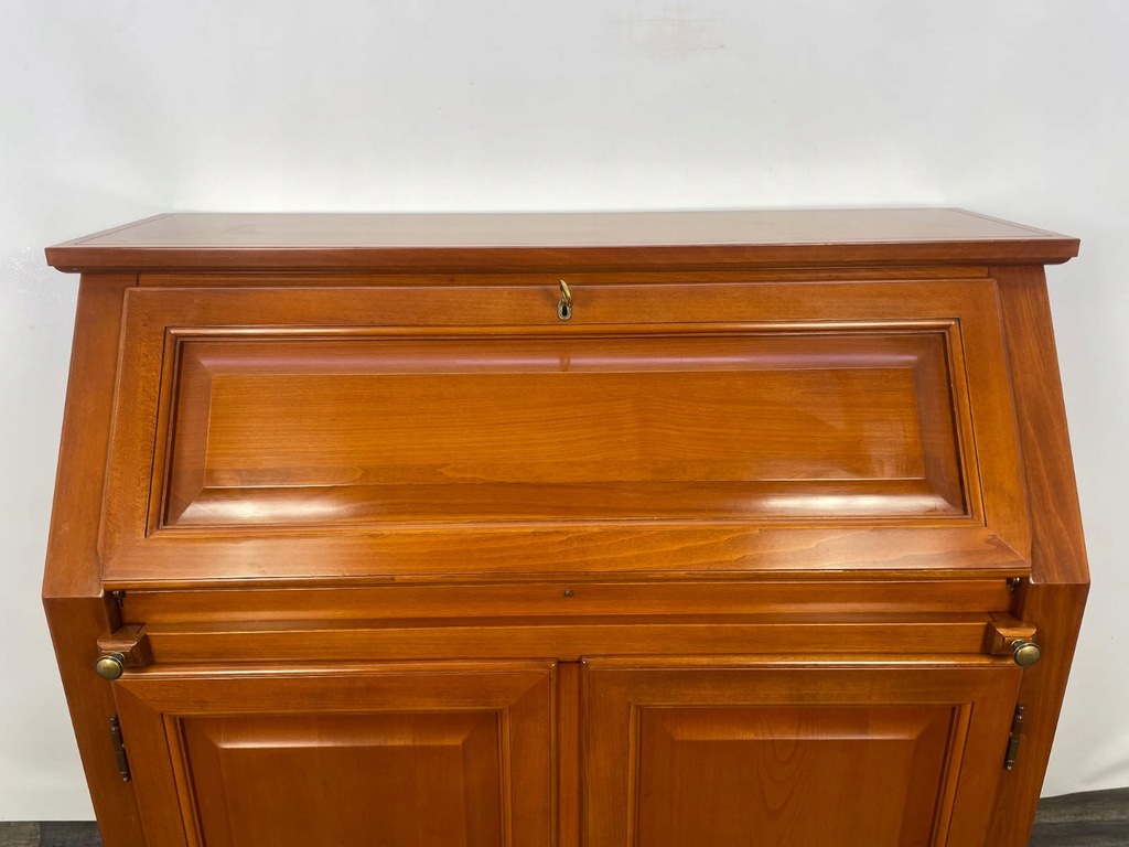 Markowy sekretarzyk pokryty fornirem orzechowym.