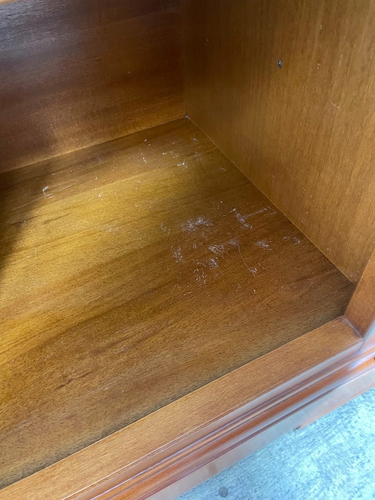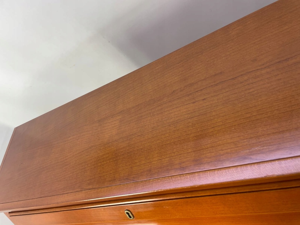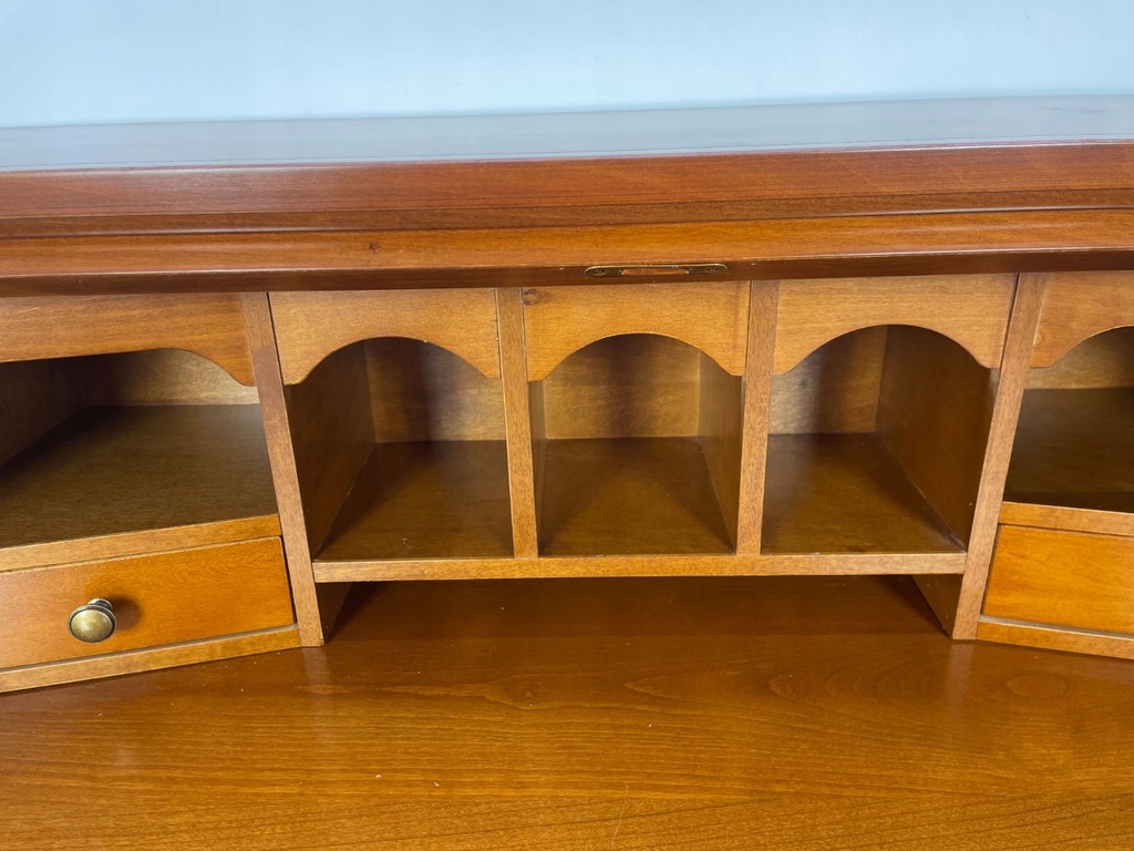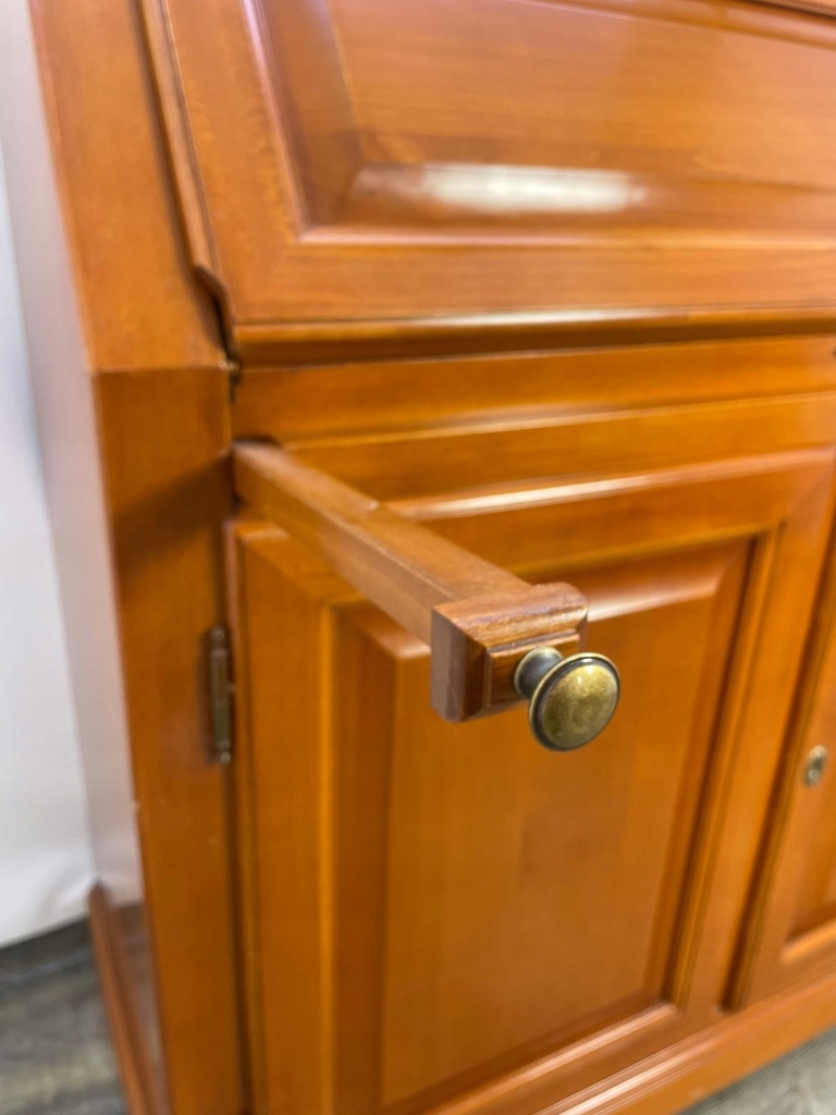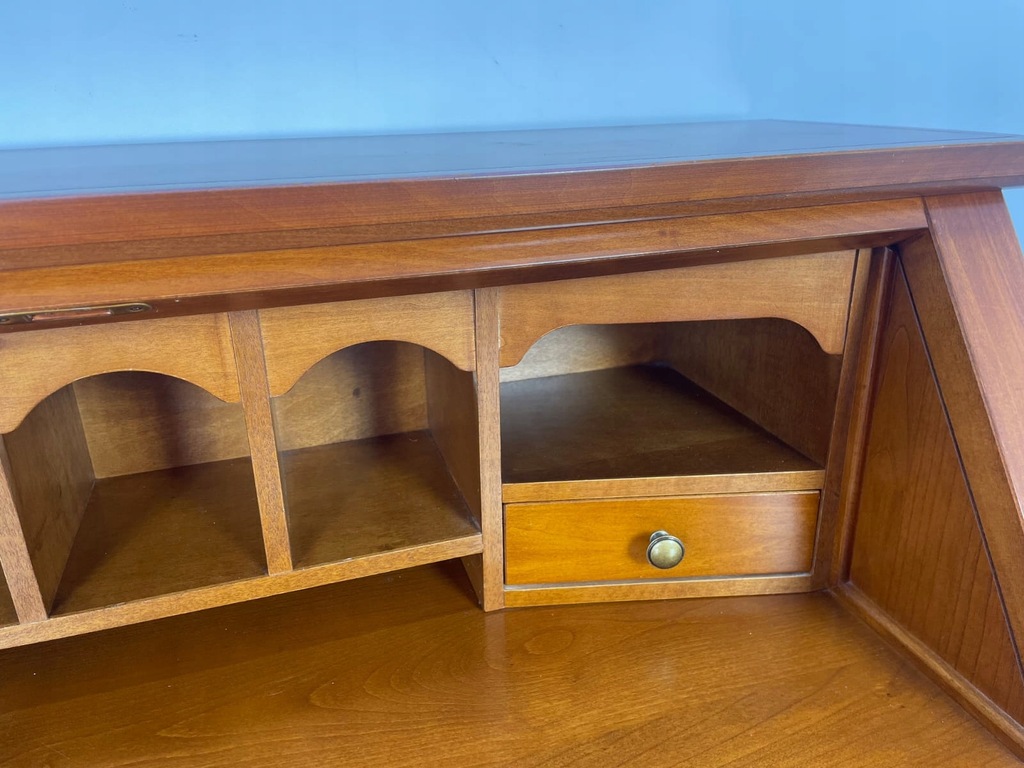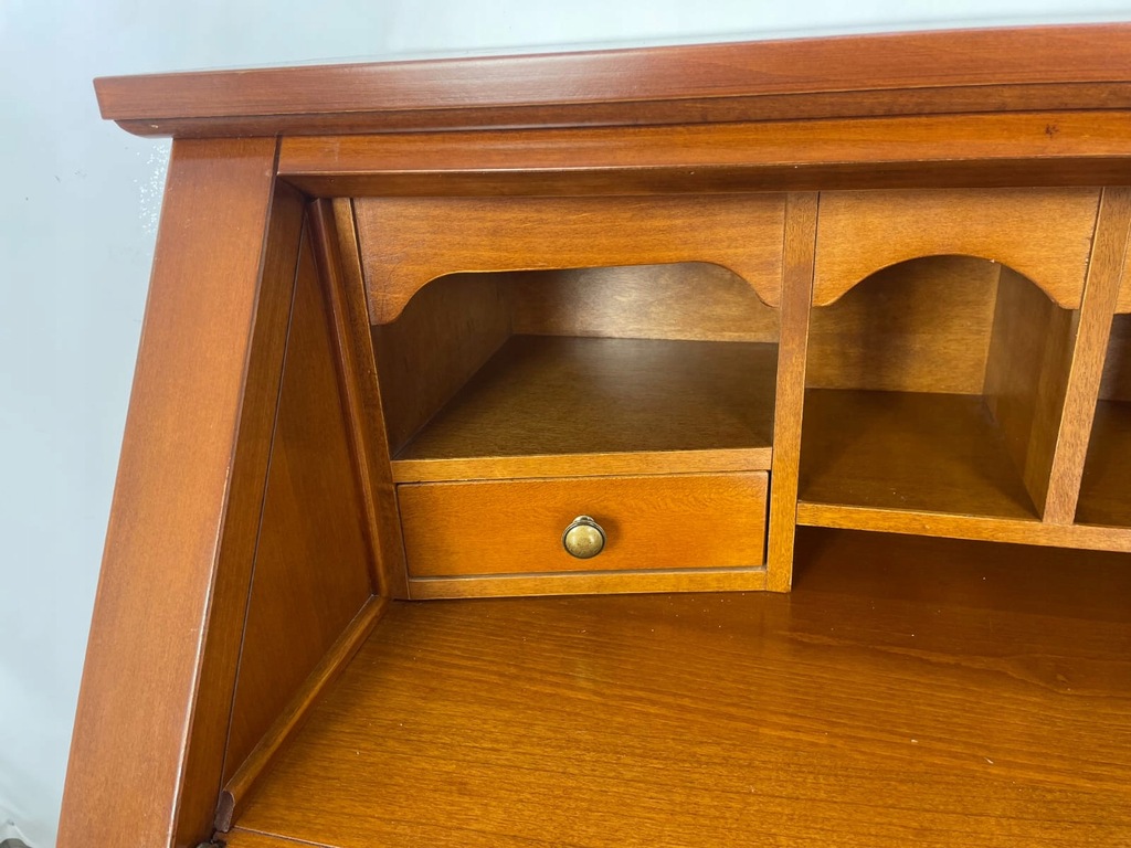 Markowy sekretarzyk pokryty fornirem orzechowym.