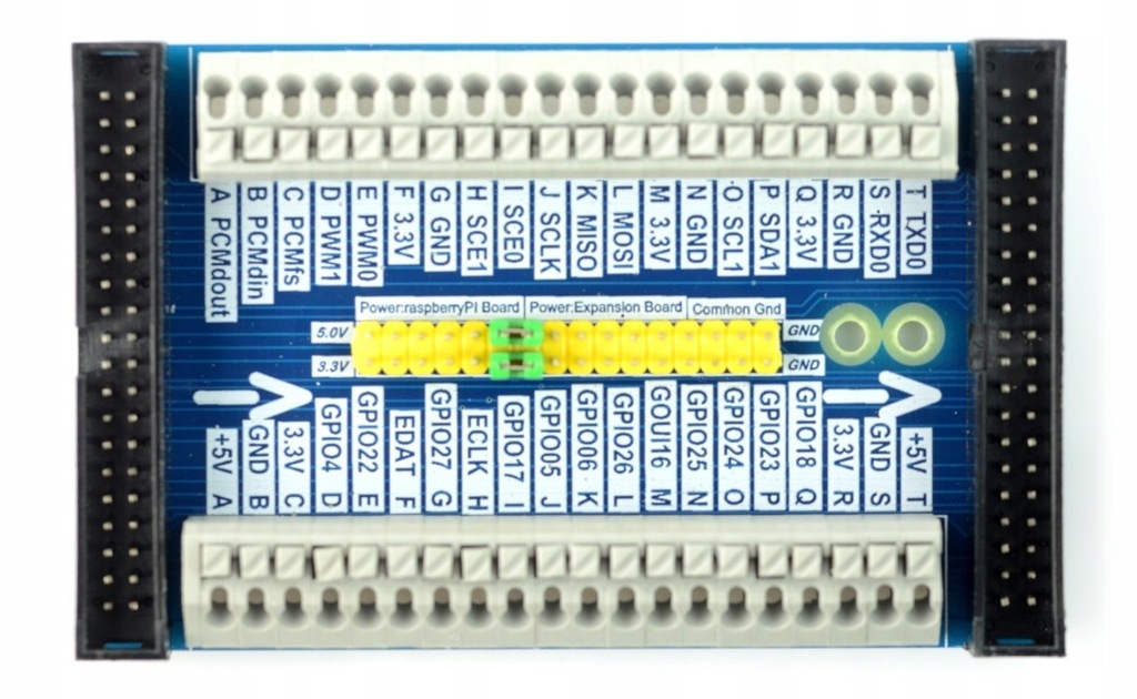 Płytka rozszerzeń pozwalająca w prosty sposób podłączać moduły do pinów GPIO w Raspberry Pi. Płytka łączy się z minikomputerem przy pomocy taśmy 40-żyłowej. Posiada złącza goldpin oraz szybkozłącza z przyciskiem. Płytki można ze sobą łączyć kaskadowo.