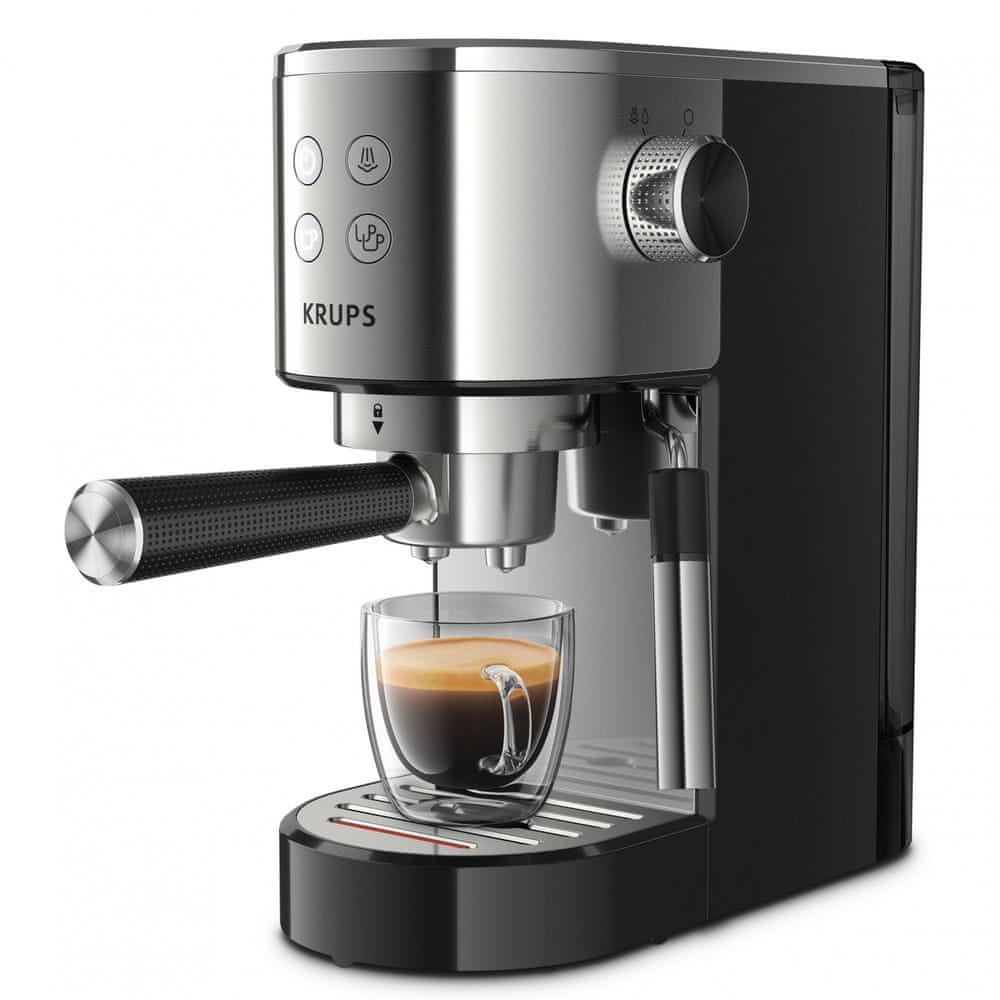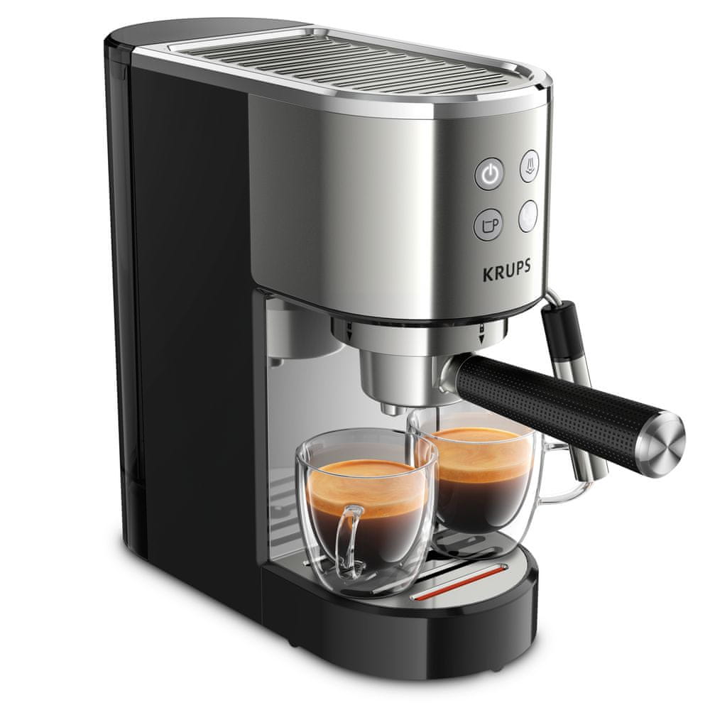 Krups Virtuoso to doskonała kawa w stylowej kompaktowej formie. Ten ekspres kolbowy premium to połączenie wyjątkowego designu i wytrzymałości stali nierdzewnej. Dzięki intuicyjnemu panelowi sterowania z funkcją automatycznego zatrzymania przygotowania kawy profesjonalne espresso otrzymasz szybko i sprawnie.