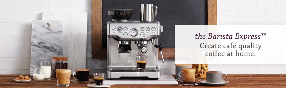 Stwórz wspaniałe espresso do smaku – w mniej niż jedną minutę. Barista Express umożliwia zmielenie ziarna bezpośrednio przed ekstrakcją, a wymienne filtry oraz możliwość wyboru automatycznej lub ręcznej obsługi zapewniają w mgnieniu oka autentyczne efekty w stylu kawiarni.