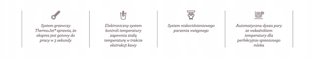 - System grzewczy: system ThermoJet, system kontroli temperatury PID, włoska pompa o mocy 15 barów