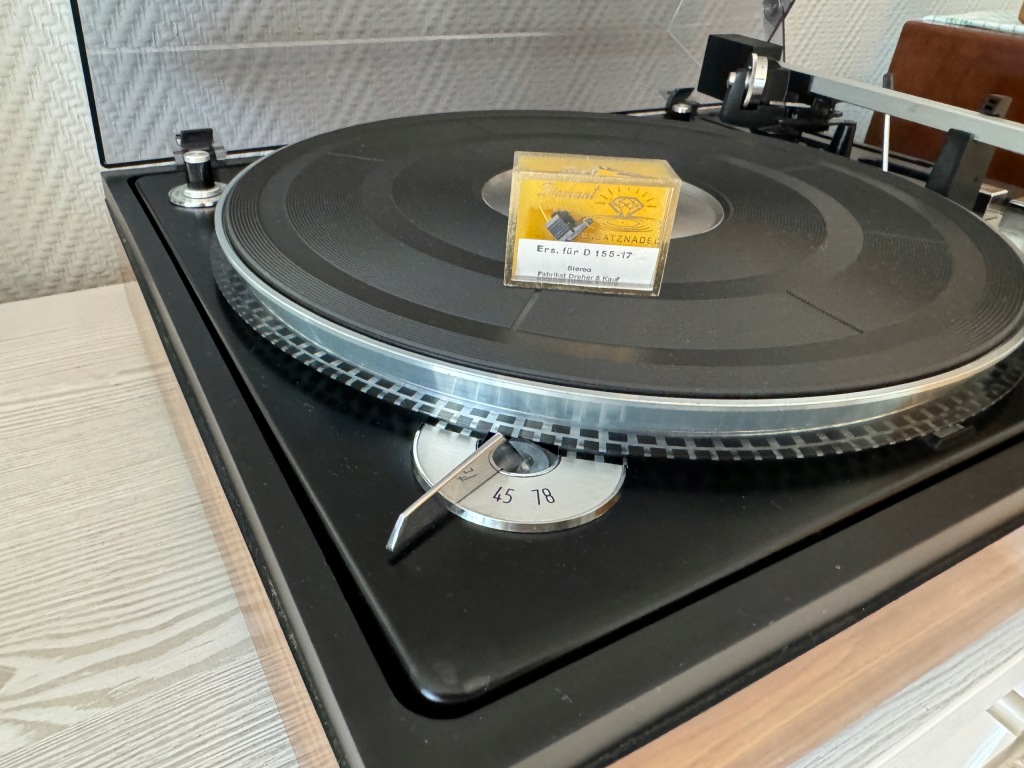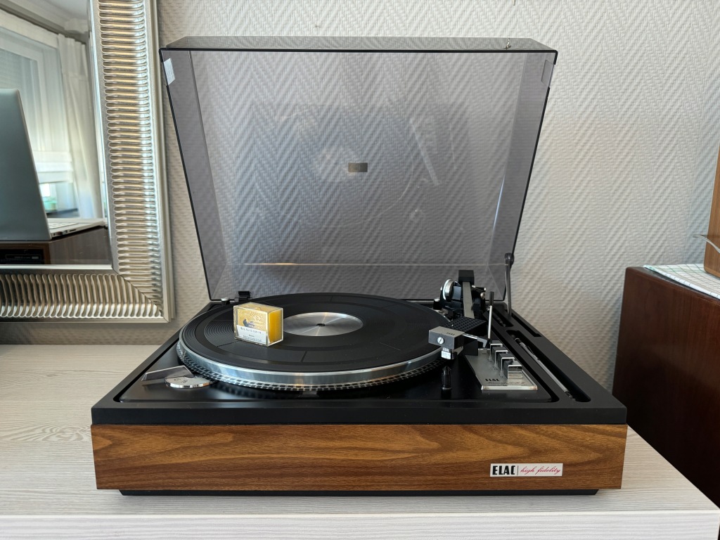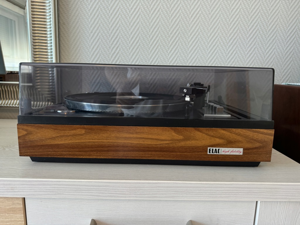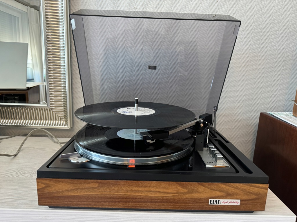 Gramofon ELAC model Miracord 50H II, to fantastyczne urządzenie z początku lat siedemdziesiątych. Gramofon jest w pięknym stanie wizualnym( patrz zdjęcia) i świetnym stanie technicznym. Od pierwszego właściciela (Szwajcaria} z minimalnym przebiegiem. W pełni automatyczny z możliwością manualnej obsługi i trzema wielkościami, prędkościami odtwarzania płyt. Gramofon ma funkcję zmieniarki płyt i ciągłego odtwarzania aż 10 płyt! Piękna stylistyka, bardzo bogate wyposażenie, całkowicie oryginalny stan bez napraw i zmian konstrukcyjnych. To przykład fantastycznej, europejskiej inżynierii. Zamontowana oryginalna wkładka ELAC z fabrycznie nową nie używaną igłą ELAC D155 -17.