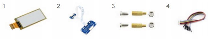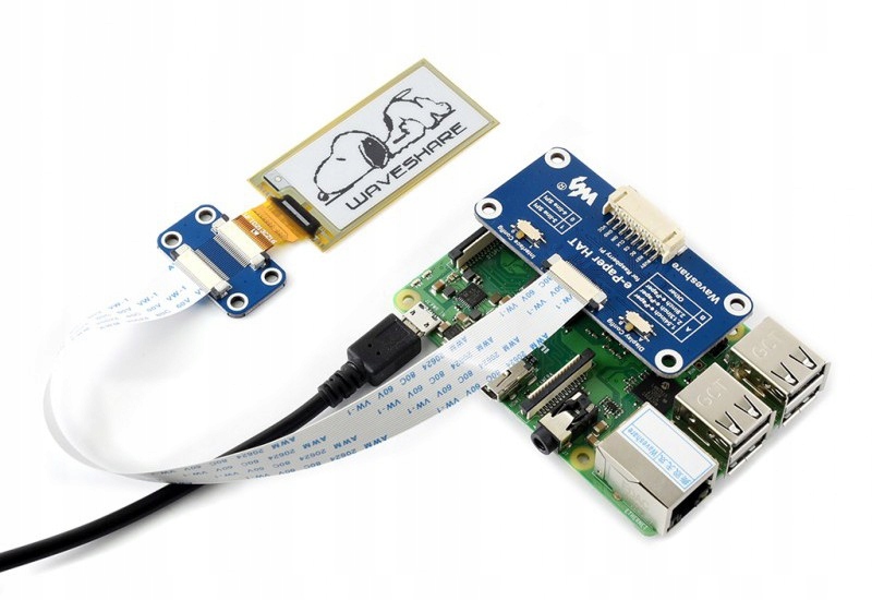 Elastyczny ekran typu e-paper o przekątnej 2.13" w technologi E-Ink o rozdzielczości 212x104 px. w technologi E-Ink. Komunikacja z wyświetlaczem odbywa się poprzez interfejs SPI. Producent udostepnia przykłady oprogramowania dla STM32, ARDUINO jak i Raspberry Pi.