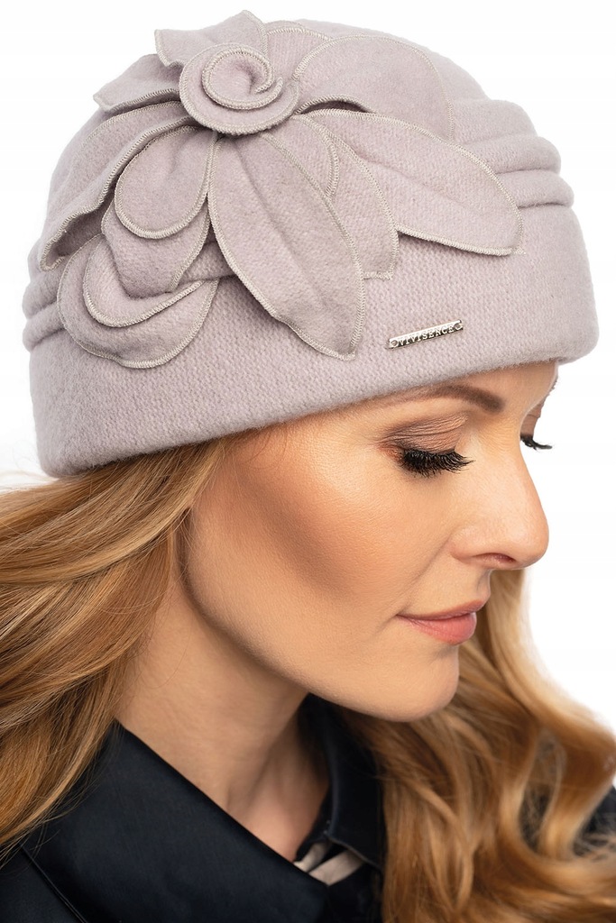 Przy jego produkcji została wykorzystana wysokiej jakości żywa wełna Woolmark®. Przędza potwierdzona jest certyfikatem Oeko-Tex standard. Czapkę zdobi kwiecista aplikacja. Szeroki, mankiet, podkreślony został dekoracyjnymi fałdami. Zaletą toczka są ręcznie robione i wyszywane zdobienia, dzięki czemu każdy egzemplarz jest niepowtarzalny.