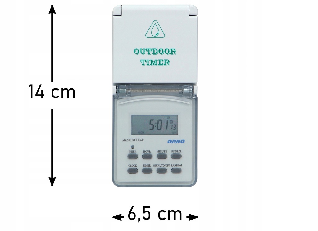 Programator z wyświetlaczem LCD do ustawiania czasu włączania i wyłączania urządzeń elektrycznych takich jak oświetlenie, ogrzewacze wody, reklamy itp. Urządzenie posiada: 8 programów czasowych, ręczne lub losowe włączanie/wyłączanie, 16 kombinacji dnia tygodnia, funkcję czasu letniego. Wewnętrzny akumulator: NiMH 1,2V > 100h.