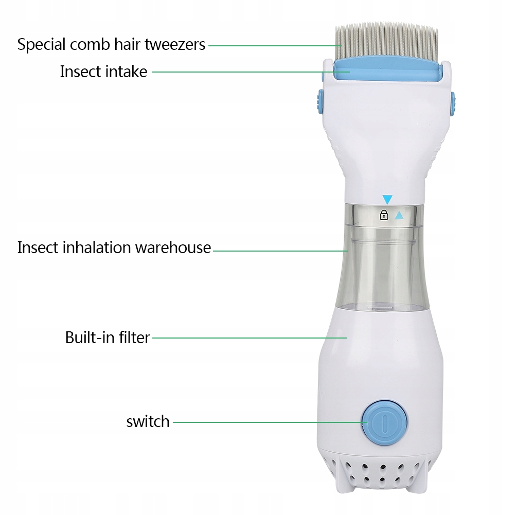 Łatwy w użyciu: Wszystkie wszy i jaja wychwytywane w jednorazowym filtrze wychwytującym, który umożliwia bezpieczne i jednorazowe.