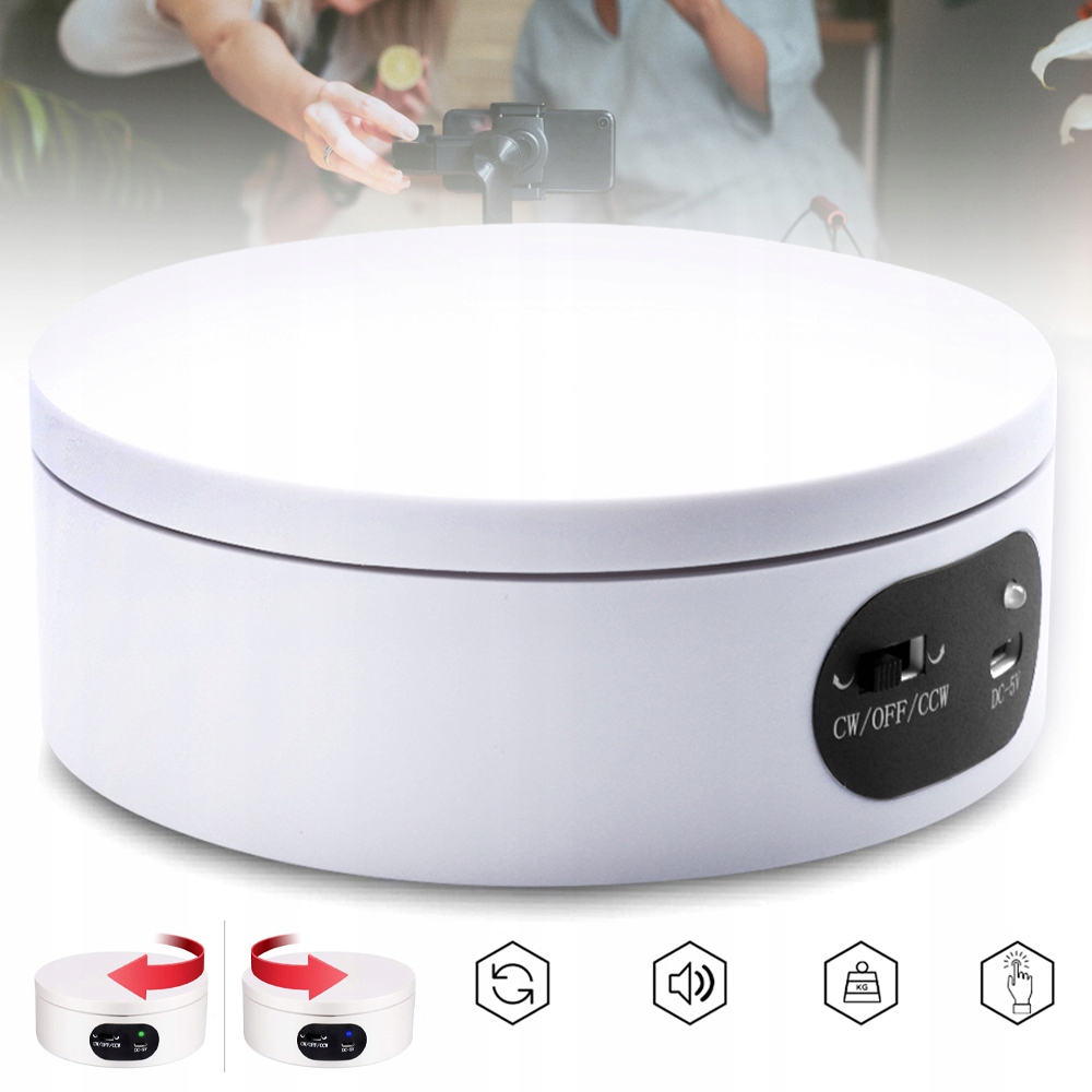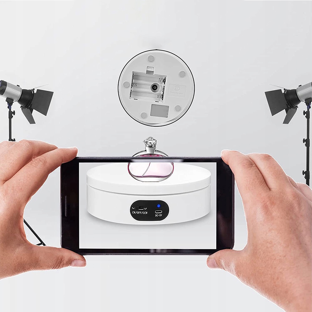 👍ELEKTRYCZNY STOJAK OBROTOWY 360 STOPNI AUTOMATYCZNA OBROTOWA PLATFORMA Z ANTYPOŚLIZGOWYMI PODKŁADKAMI ŁADOWANIE USB👍