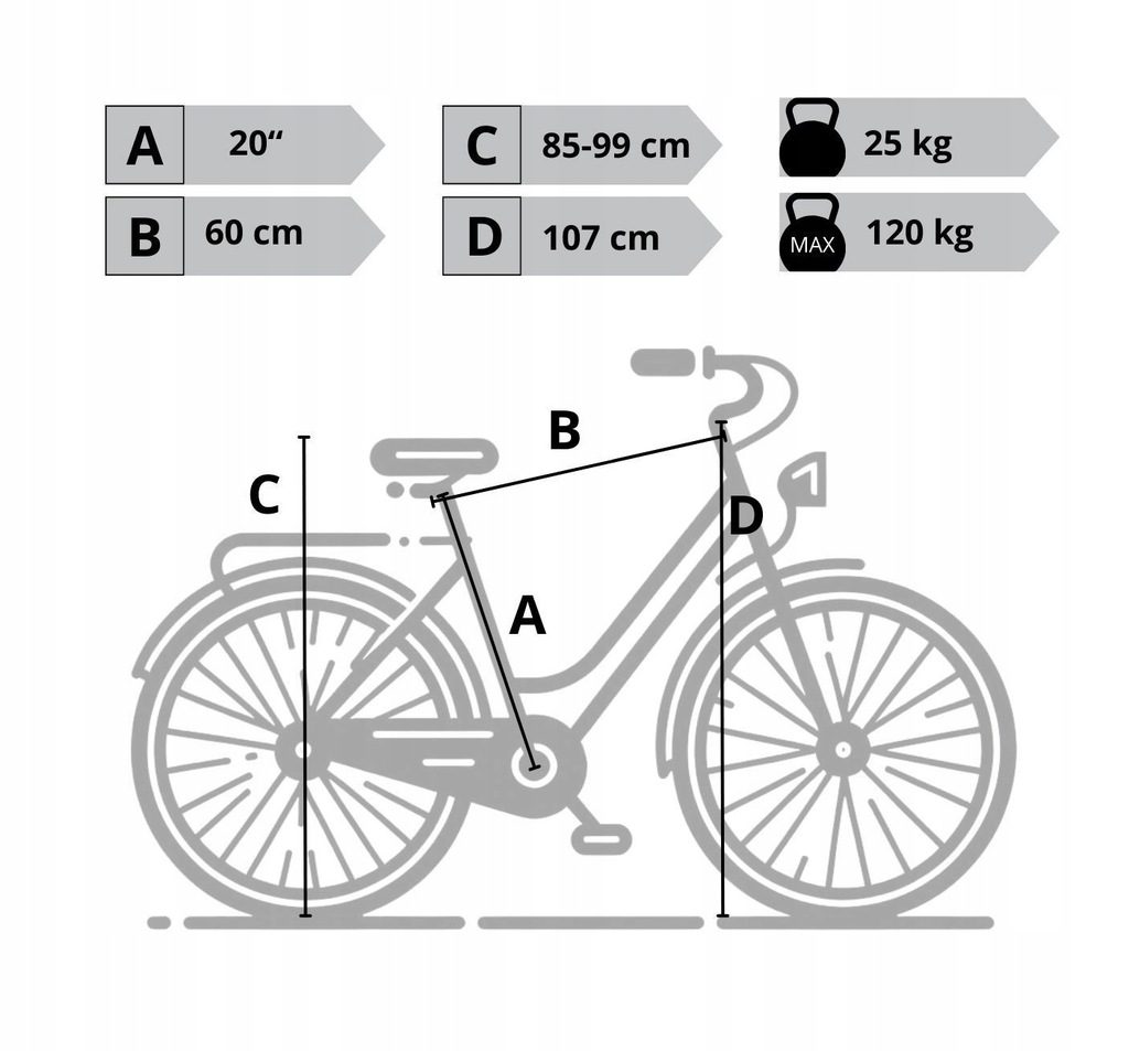 👉 Opony 28" x 1,60" zapewniają stabilność i komfort podróży, a amortyzowany widelec absorbuje nierówności terenu, sprawiając że jazda jest jeszcze bardziej przyjemna.