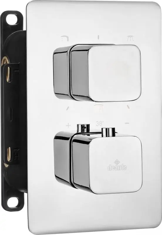 Element zewnętrzny to dodatek niezbędny do BOXu termostatycznego Deante. Razem stanowią integralną całość, która łączy w sobie funkcjonalność i świetny design. Co więcej, precyzyjne wykończenie gwarantuje pełną satysfakcję z użytkowania. W systemie podtynkowym jedynymi widocznymi elementami jest głowica prysznicowa oraz zewnętrzna okładzina korpusu z rozetą, pokrętłem źródła wypływu oraz dźwignią. Minimalizuje to ilość powierzchni do sprzątania oraz poprawia odbiór wizualny całego pomieszczenia. Marka Deante stawia w swojej pracy nie tylko na nowoczesne technologie — bezpieczne i przyjazne dla środowiska. To również pionier w zakresie funkcjonalności i wyjątkowego designu. Model elementu zewnętrznego do BOXu termostatycznego to świetne rozwiązanie do nowoczesnej łazienki, w której możemy zarówno oddać się błogiemu relaksowi, ale także będziemy oszczędzać wodę, jak i dbać o naszą planetę.
