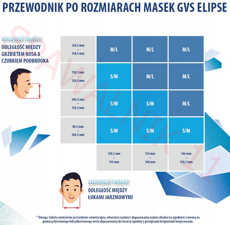 Jeden uniwersalny rozmiar - testy przeprowadzone przez niezależną jednostkę badawczą wykazały, że dla 90% badanych wystarcza uniwersalny rozmiar półmaski zapewniający bardzo wysoką szczelność a więc bezpieczeństwo jej użytkowania.