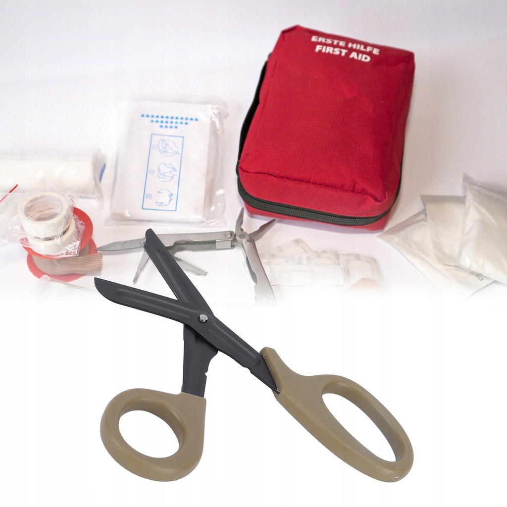 Zastosowanie: Nadaje się do cięcia gazy, bandaży, płótna, usuwania szwów oraz wyposażony w zestaw ratunkowy