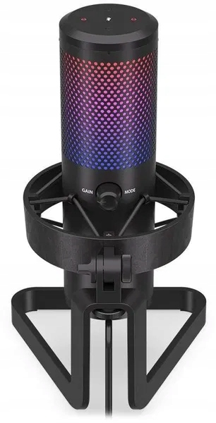 Mikrofon - biurkowy, połączenie przez Jack 3,5mm i USB-C, długość przewodu: 2,5m, kondensator, częstotliwość: od 30Hz do 18000Hz, pop filtr