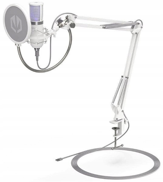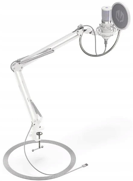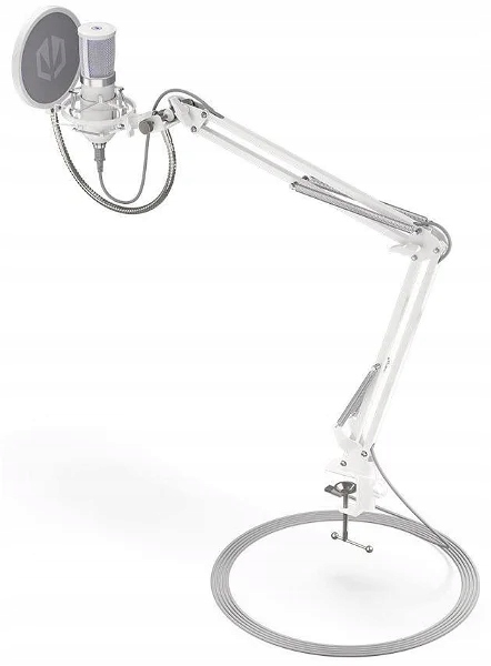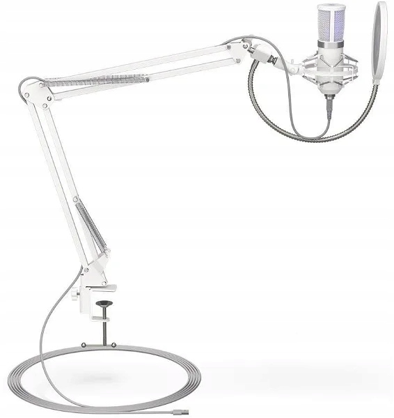 Mikrofon - biurkowy, połączenie przez Jack 3,5mm i USB-C, długość przewodu: 2,9m, kondensator, częstotliwość: od 18Hz do 21000Hz, pop filtr