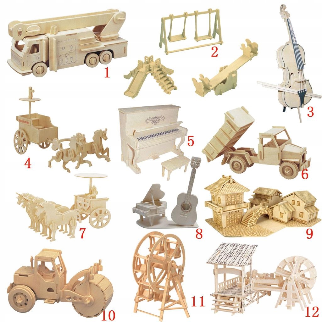 3D Wooden Puzzles Woodcraft Construction Kit DIY Fire Engine Puzzles Kid Toy