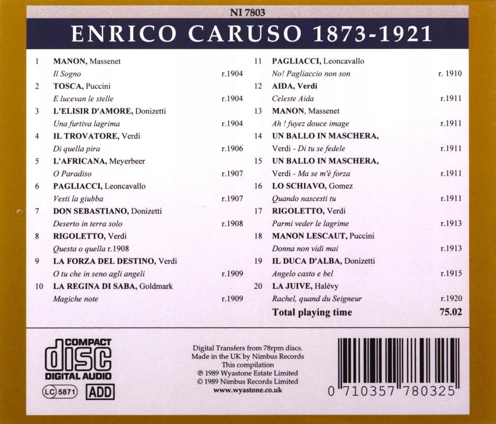 Enrico Caruso: Enrico Caruso In Opera Vol. 1 1904-1920 [CD]