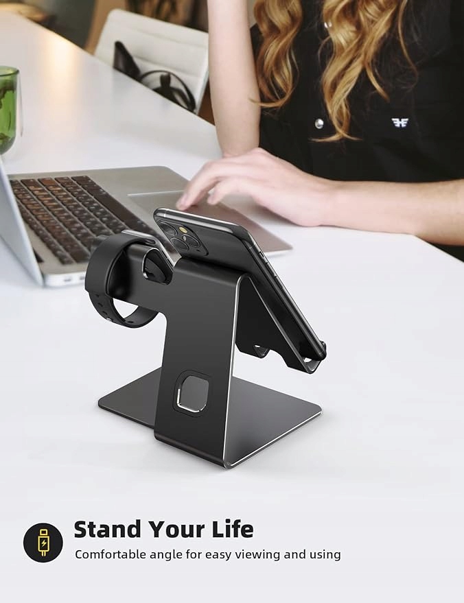 Wyjątkowy design. Wygodne zarządzanie kablami, aby pulpit był czysty i uporządkowany. Obsługuje tryb stolika nocnego, po prostu połóż Apple Watch poziomo i pozwól, aby stacja dokująca zrobiła resztę.