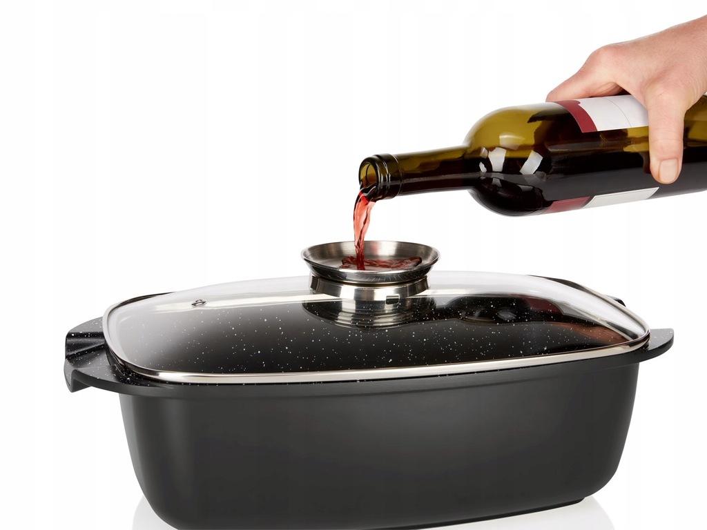 - uchwyt pokrywy pozwalający w trakcie gotowania dolewać w miarę potrzeb np. wodę lub oliwę