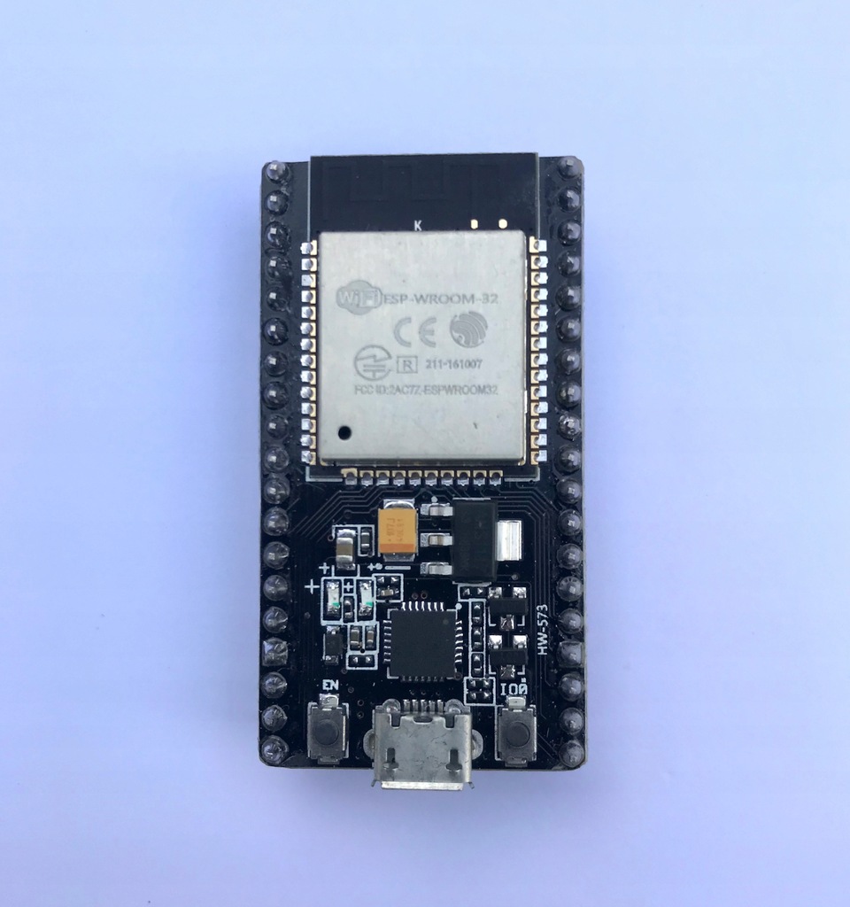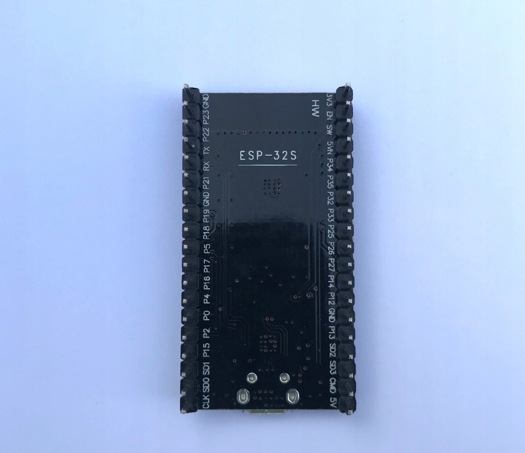Płytka NodeMCU ESP-32S z wbudowanym modułem ESP-WROOM-32. Moduł posiada wyprowadzenia w postaci goldpinów, raster 2,54 mm. Układ z rodziny ESP32 do komunikacji sieci WiFi w paśmie 2,4 GHz oraz w standardzie Bluetooth BLE / v4.2. Dzięki wbudowanemu stabilizatorowi napięcia, moduł można zasilać napięciem 5 V. Układ posiada 38 wyprowadzeń wraz z popularnymi interfejsami, m.in: UART, SPI, I2C.