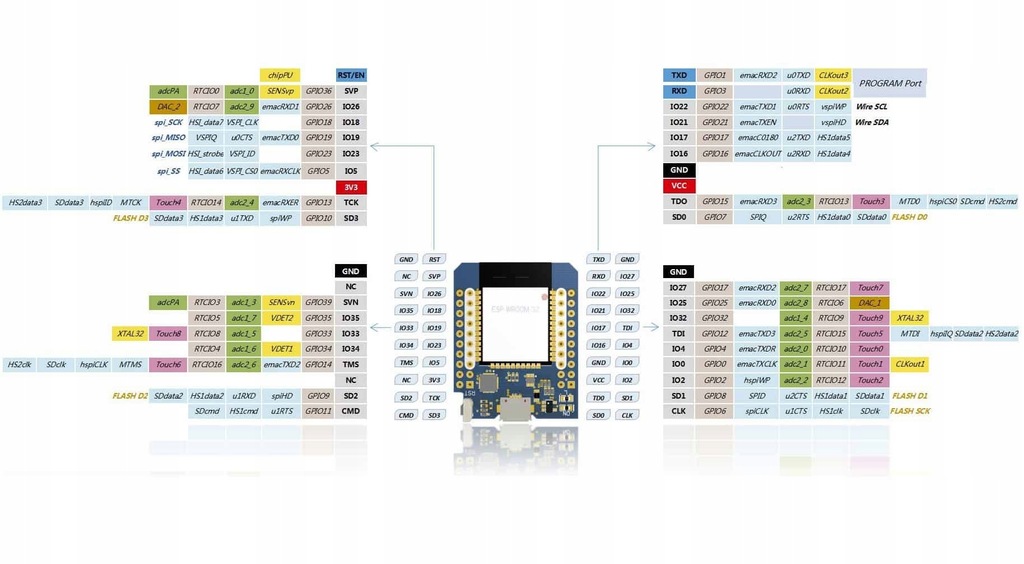 Moduł w tej wersji został osadzony na wygodnej płytce podobnej do Wemod D1 mini znanej z ESP8266. Dzięki temu przejście na nią jest bezbolesne. Mimo że moduł ten ma dużo więcej wyprowadzeń, zostały zachowane odpowiednie piny zgodne z ESP8266.
