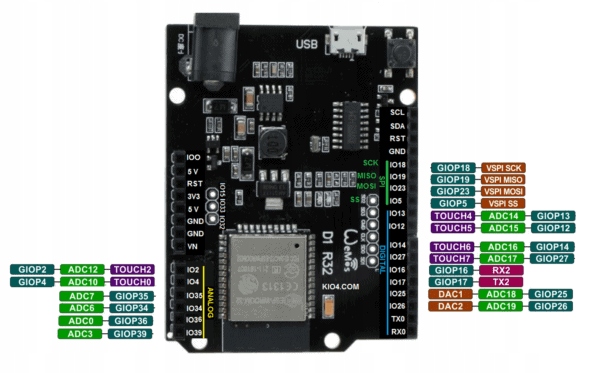 Płytka jest zgodna w 100% z Wemos D1 R32.