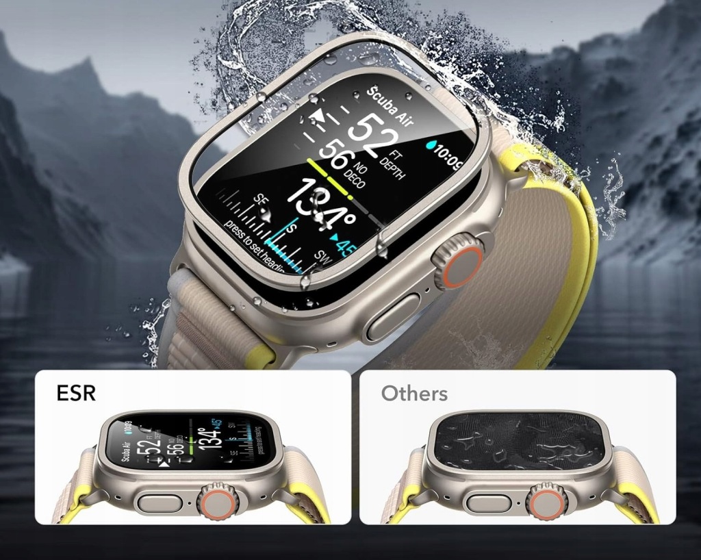 ESR Armorite szkło ochronne do zegarka Apple Watch Ultra 2/1 (2024/2023/2022, 49 mm), ochrona wyświetlacza z hartowanego szkła z aluminiową ramą, ochrona na całej powierzchni, metal tytanowy, 2 sztuki