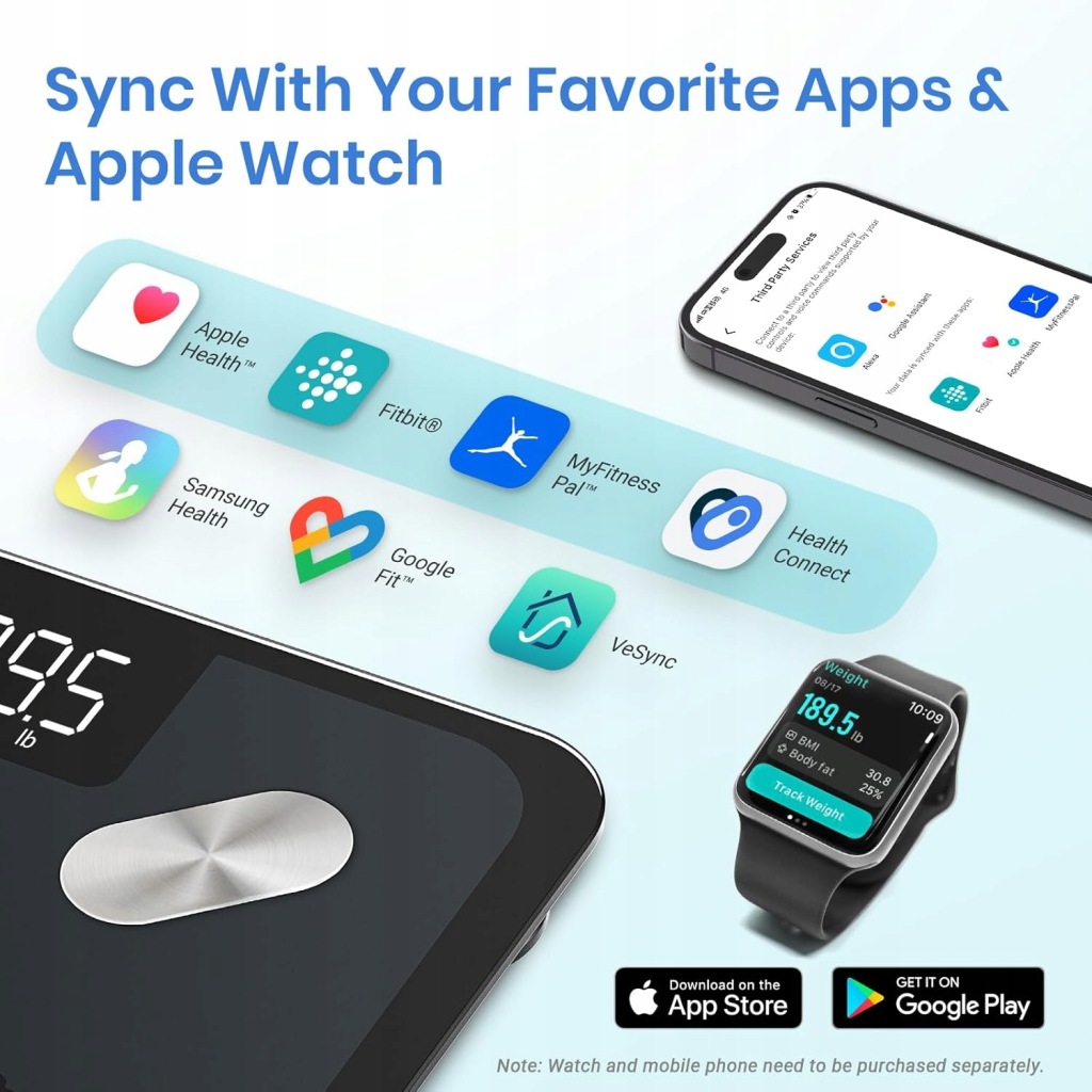 Przenieś swoje osobiste rekordy na nowe wyżyny dzięki inteligentnej wadze fitness Etekcity . Podłącz inteligentną wagę do smartfona za pomocą bezpłatnej aplikacji VeSync , w której możesz ponownie przeglądać 13 podstawowych pomiarów ciała i śledzić swoje postępy, kiedy tylko chcesz.
