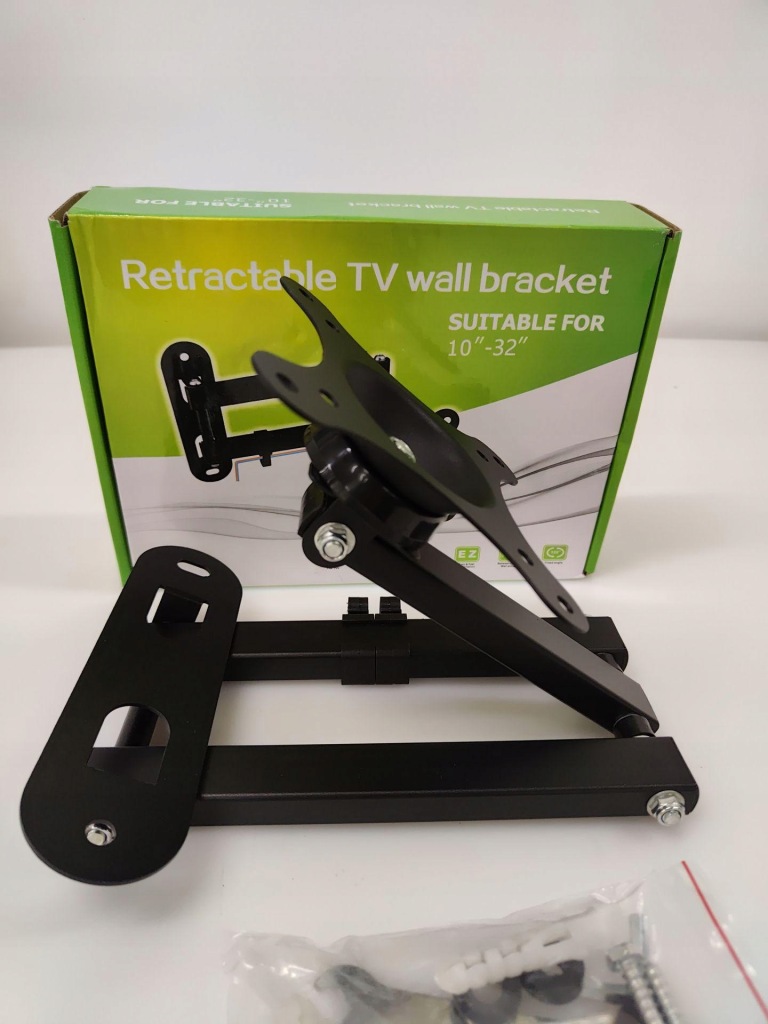 Uchwyt ścienny ETERNAL - uchwyt z regulacją 360°, obrotowy i pochylany, metalowy. Dostosowane do potrzeb: ten uchwyt ścienny został specjalnie zaprojektowany do nowego monitora (urządzenie wyświetlające sprzedawane osobno). Dynamiczne oglądanie: dzięki regulowanym funkcjom pochylenia, obrotu i wysunięcia ten uchwyt ścienny zapewnia dynamiczne oglądanie monitora. Zbudowany z myślą o trwałości: solidna konstrukcja wytrzymująca do 30 funtów, wykonana ze stali malowanej proszkowo, trwała i odporna na zarysowania powierzchnia, idealna do użytku w domowej rozrywce, restauracjach i nie tylko. Łatwy w montażu: w zestawie znajdują się proste instrukcje „zrób to sam”, śruby i kołki, montaż może zająć dosłownie mniej niż 10 minut. "Klasa światowa"