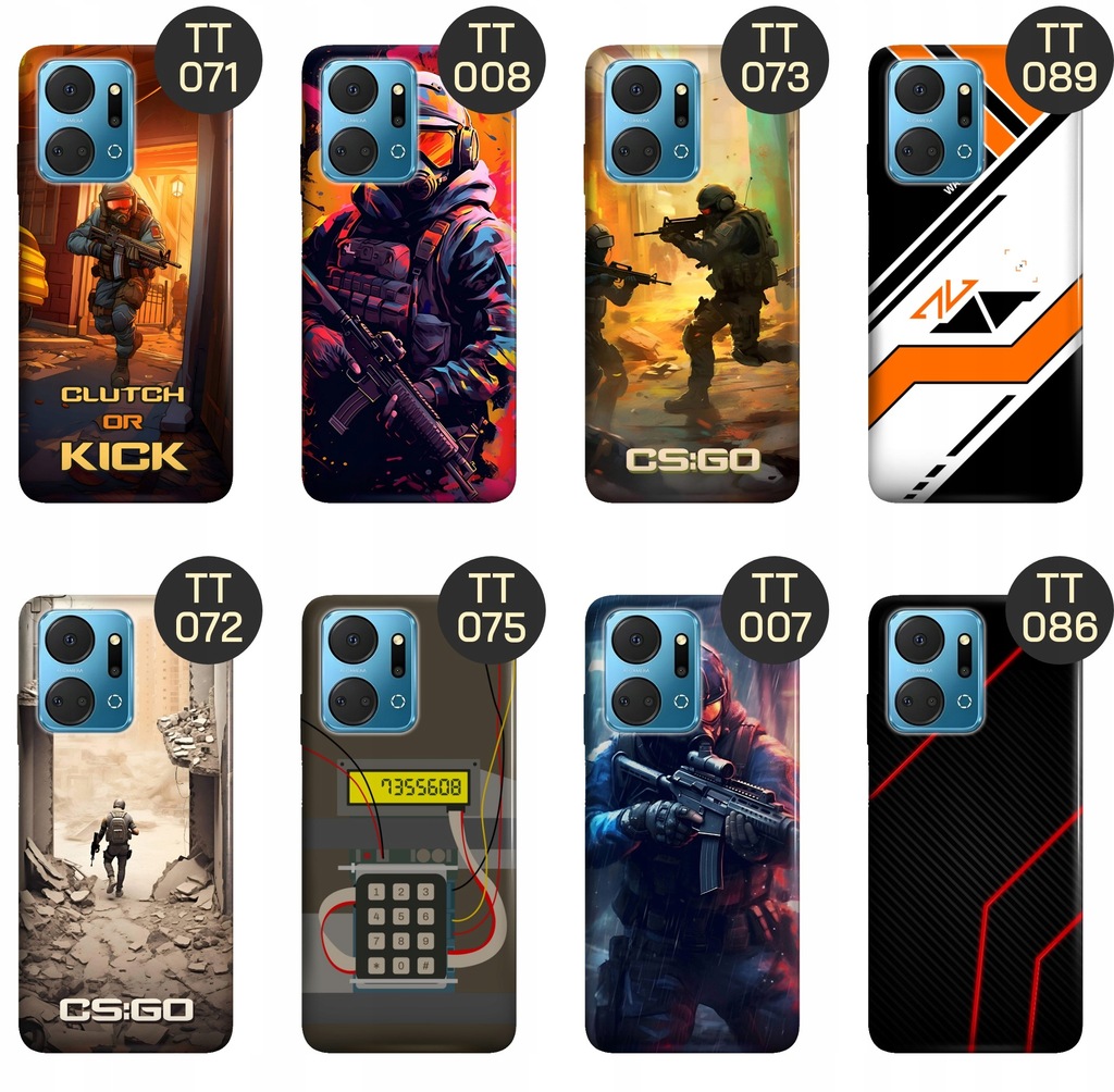 Set grafik na etui „CS:GO” to must-have dla wszystkich fanów kultowej gry Counter-Strike: Global Offensive. Dzięki wysokiej jakości wykonania i precyzji szczegółów, etui nie tylko zabezpieczą Twój telefon, ale również wyrażą Twoją miłość do tej kultowej gry i podkreślą Twój unikalny styl.