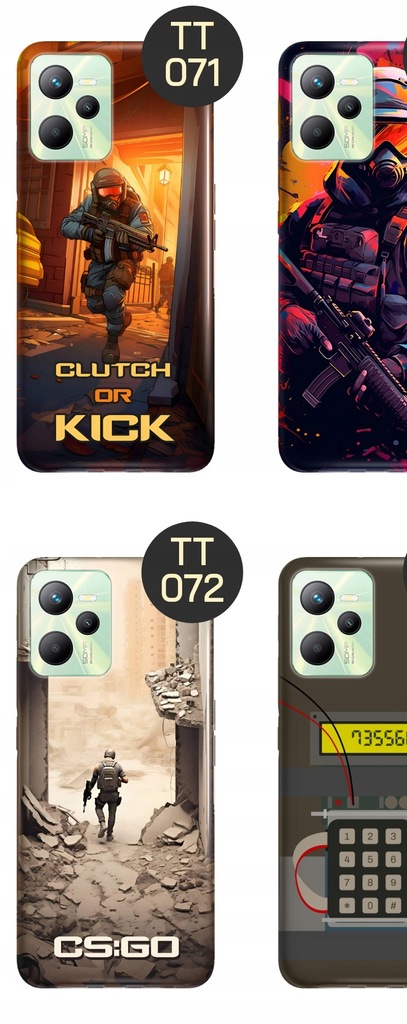 Set grafik na etui „CS:GO” to must-have dla wszystkich fanów kultowej gry Counter-Strike: Global Offensive. Dzięki wysokiej jakości wykonania i precyzji szczegółów, etui nie tylko zabezpieczą Twój telefon, ale również wyrażą Twoją miłość do tej kultowej gry i podkreślą Twój unikalny styl.