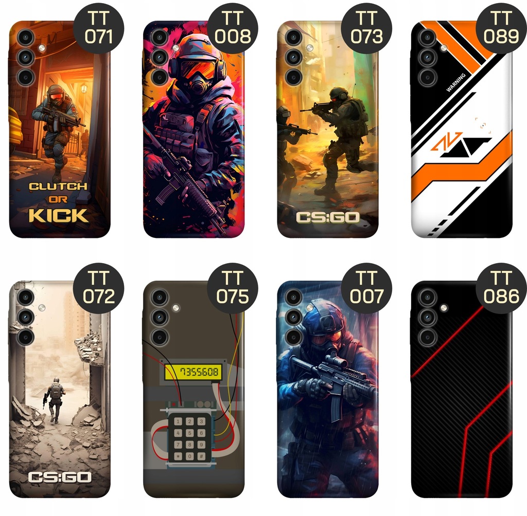 Set grafik na etui „CS:GO” to must-have dla wszystkich fanów kultowej gry Counter-Strike: Global Offensive. Dzięki wysokiej jakości wykonania i precyzji szczegółów, etui nie tylko zabezpieczą Twój telefon, ale również wyrażą Twoją miłość do tej kultowej gry i podkreślą Twój unikalny styl.