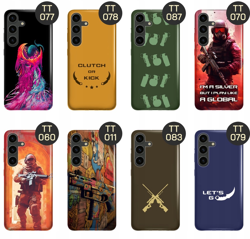 Set grafik na etui „CS:GO” to must-have dla wszystkich fanów kultowej gry Counter-Strike: Global Offensive. Dzięki wysokiej jakości wykonania i precyzji szczegółów, etui nie tylko zabezpieczą Twój telefon, ale również wyrażą Twoją miłość do tej kultowej gry i podkreślą Twój unikalny styl.