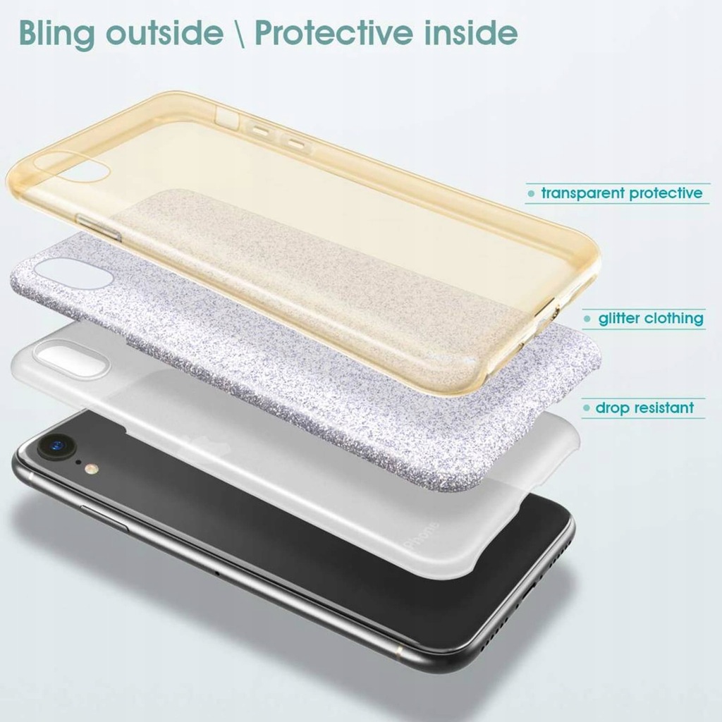 Elastyczny, super cienki pokrowiec na telefon wykonany z wysokiej jakości tworzywa TPU, nie powiększa znacząco urządzenia, a jednocześnie doskonale amortyzuje upadki telefonu podczas codziennego użytkowania. Etui pomaga utrzymać urządzenie bez rys, ponieważ pasuje idealnie, perfekcyjnie przylega i nie odstaje. Posiada przy tym wycięcia na wszystkie otwory i sloty a także stylowy, oryginalny wygląd dzięki brokatowej fakturze.