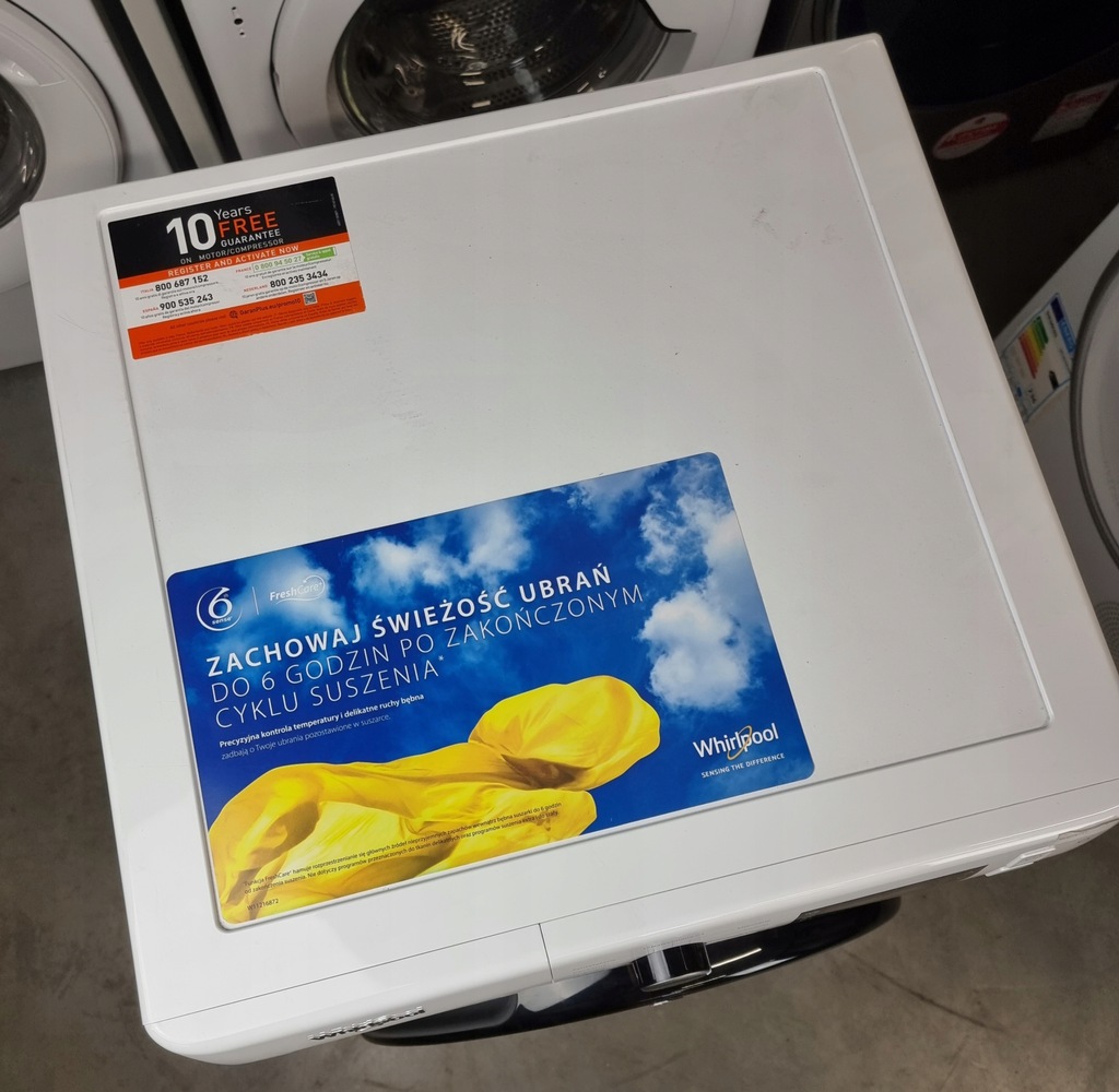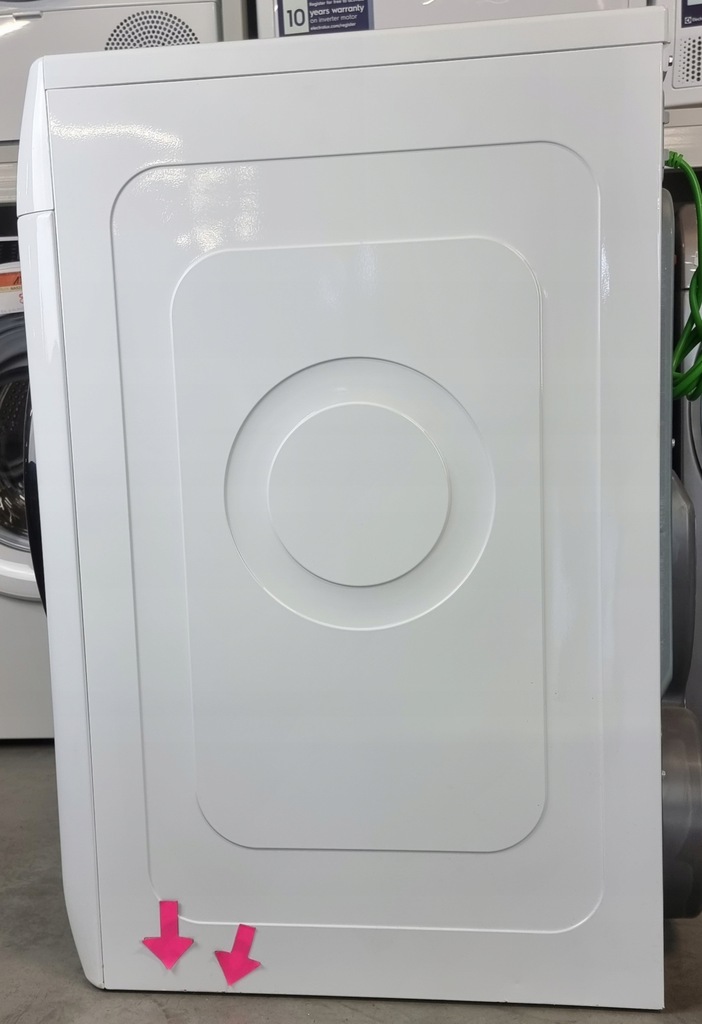 Produkt nowy, outletowy z gwarancją producenta. Uszkodzenia widoczne na zdjęciach. Suszarka pochodzi z polskiej dystrybucji. Brak oryginalnego opakowania.