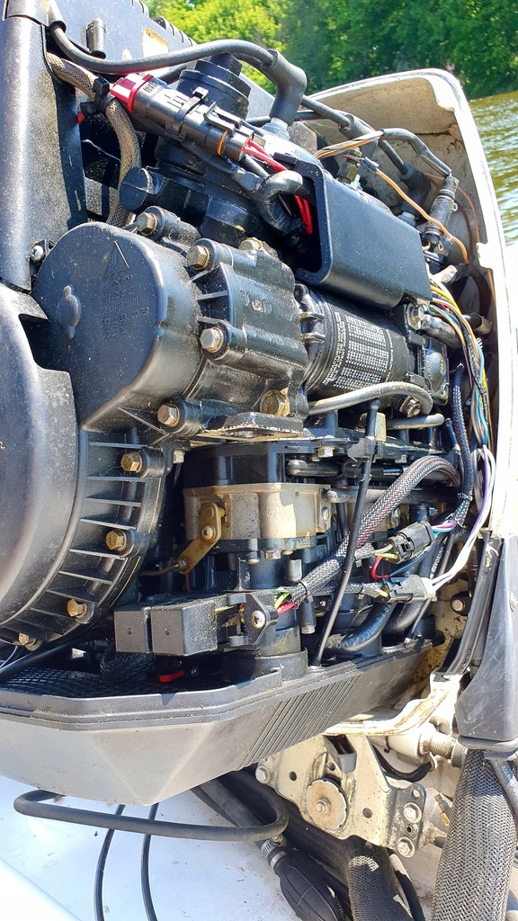 Silnik w 100% sprawny z automatycznym systemem mieszania oleju z paliwem i nieopadającym power trymem .Kolumna XL. Zdjęty z łodzi w październiku 2022 (wymiana na 4T) do końca pływał i jest w dobrej kondycji. Dedykowany do wody słonej i słodkiej (pływał w słodkiej), W komplecie zbiornik oleju z magistralą; cięgła; manetka oryginalna z funkcją przód-tył -gaz bez biegu-power trym; wiązki elektryczne gotowe do podłączenia-wiązka z pinami do silnika, wiązka do manetki z brzęczkiem i zrywką, wiązka z oryginalną stacyjką z funkcją ssania. Bez zegarów , zostały w łodzi. Dla konkretnie zainteresowanych podeślę film z ostatniego dnia pływania specjalnie przygotowany dla potencjalnego nabywcy (rozruch, wskazania zegarów, wejście w ślizg). Ze względu na wagę, odbiór wyłącznie osobisty.
