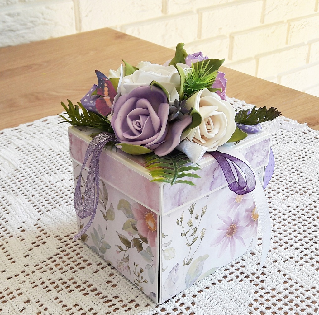 Przedmiotem sprzedaży jest eksplodujące pudełko wykonane na zamówienie. Pudełko może być wykonane z okazji urodzin, Chrztu św., I Komunii Świętej, narodzin dziecka i innych okazji związanych z dziecięcą uroczystością. Zdjęcia pokazują tylko przykładowe pudełka. Wzór, kolorystykę i zawartość pudełka omawiamy indywidualnie w prywatnych wiadomościach.