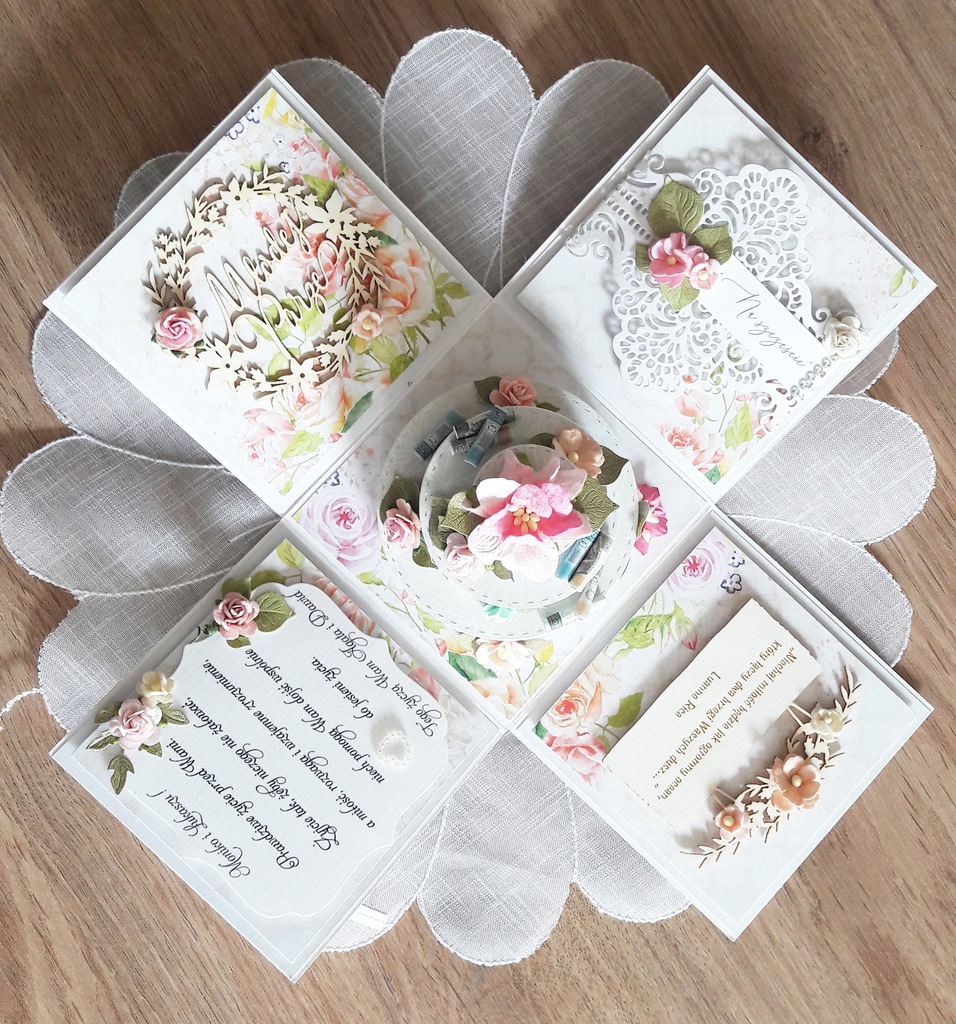 (np. ścianka nr 1- zdjęcie , ścianka nr 2- życzenia od-dla, ścianka nr 3 -grafika tekturowa, wierszyk itp., ścianka nr 4-kieszonka na pieniądze, koperta itp.)