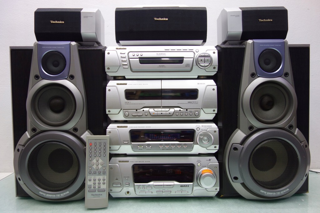 Wieża w 100% sprawna.Cd odtwarza oryginalne jak i również nagrywane płyty.Widoczne normalne ślady użytkowania.Ryski,przetarcia na obudowach.Lekkie zadziory okleiny kolumn.Izolowane kable w satelitach.