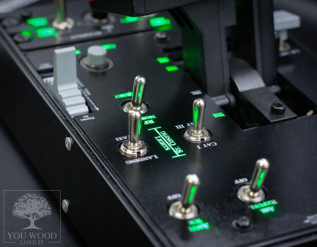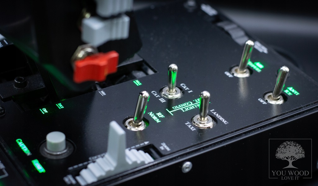 Panel zaprojektowany jest w sposób jak najbardziej praktyczny dla użytkownika wirtualnego F16, dzięki czemu pod ręką znajdują się takie przełączniki jak Master Arm Switch czy Autopilot. Dodatkowo z panelami przychodzi dokładna instrukcja przypisania konkretnych przełączników do ich odpowiedników w Digital Combat Simulator (DCS) dzięki czemu kupujący ma 100% pewności, że wszystko będzie zgodne z oznaczeniami na froncie przepustnicy.