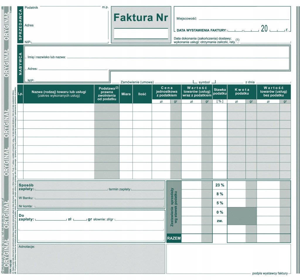 FAKTURA PEŁNA DLA PROWADZĄCYCH SPRZEDAŻ BRUTTO