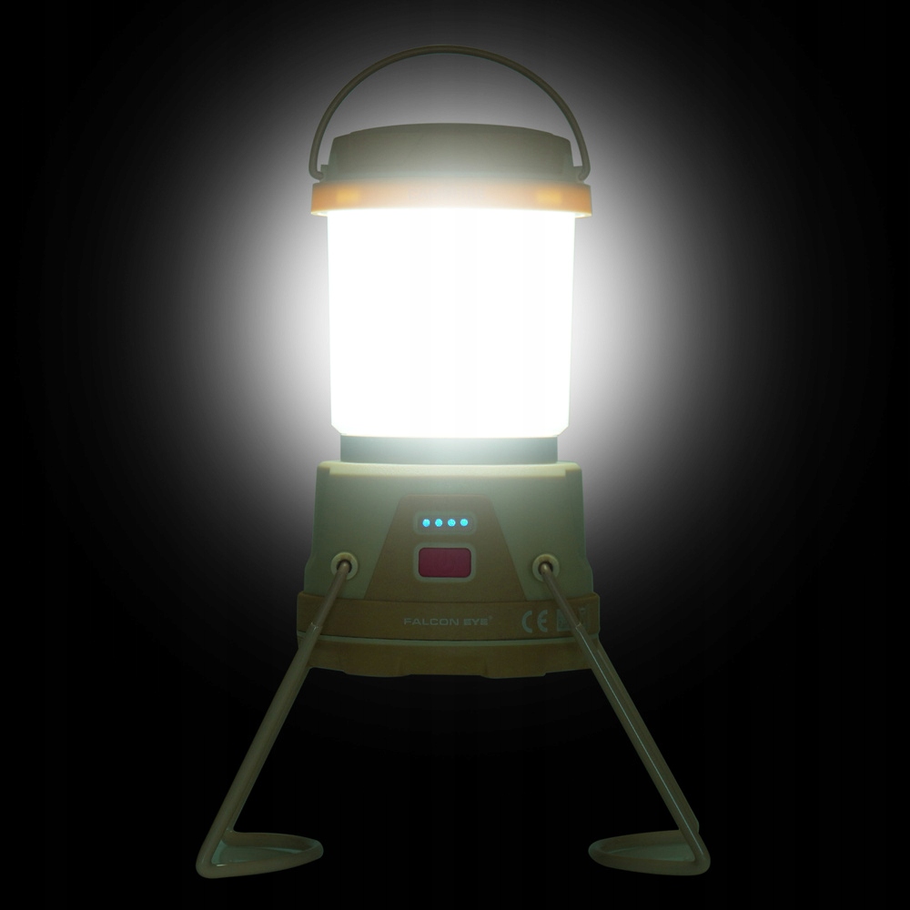 Lampa kempingowa Campfire o dużej funkcjonalności od firmy Falcon Eye. Latarka posiada kilka trybów o zróżnicowanym kolorze oświetlenia oraz jego natężenia. Dodatkowo funkcja Dimmer pozwala dopasować w danym trybie (za wyjątkiem Red Strobe) jasność w zakresie od 10 do 100%. Cechą szczególną lampy jej tryb łączący światło z zimnym co daje całkowitą moc strumienia świetlnego na poziomie 1720 lm.