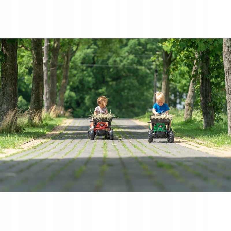 Traktor na pedały z przyczepą Red Supercharger firmy Falkto spełnienie marzeń niejednego małego traktorzysty. Starannie wykonany, z dbałością o najmniejszy szczegół! ŻadenFarmerby takimnie pogardził. Pojazd wykonany z najwyższej jakości tworzywaprzeznaczonydla dzieci w wieku od 2 lat. Pojazd jest wyposażony w przednią łyżkę oraz odpinaną przyczepę z panelami i kierownicę z klaksonem. Koła traktorka zostały wykonane z wysokiej jakości plastiku. Traktor posiada również otwieraną maskę z imitacją prawdziwego silnika.