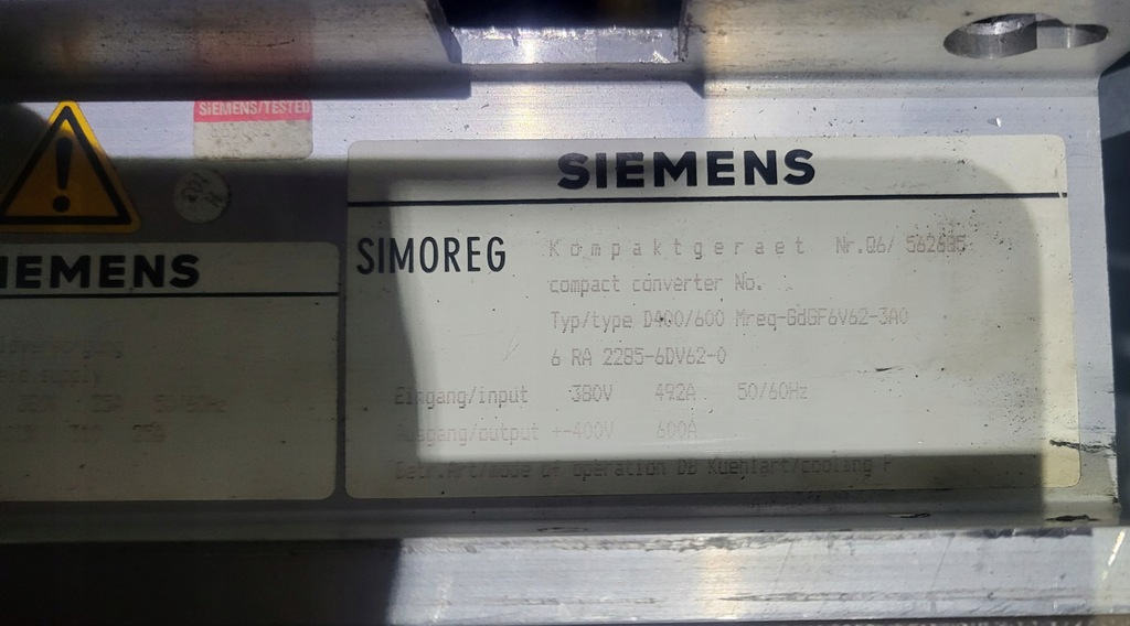 Używane sprawne NAPĘD DC SIEMENS SIMOREG 6RA 2285-6DV62-0 (D400/600 Mreq-GdF6V22-3A0) 3AC/DC 400V 600A - jedna sztuka po wymianie tyrystorów. Stan jak na foto.