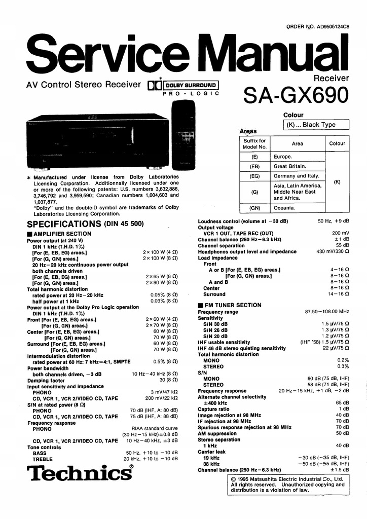 Do sprzedania wystawiam Amplituner stereo Technics SA-GX690 + pilot